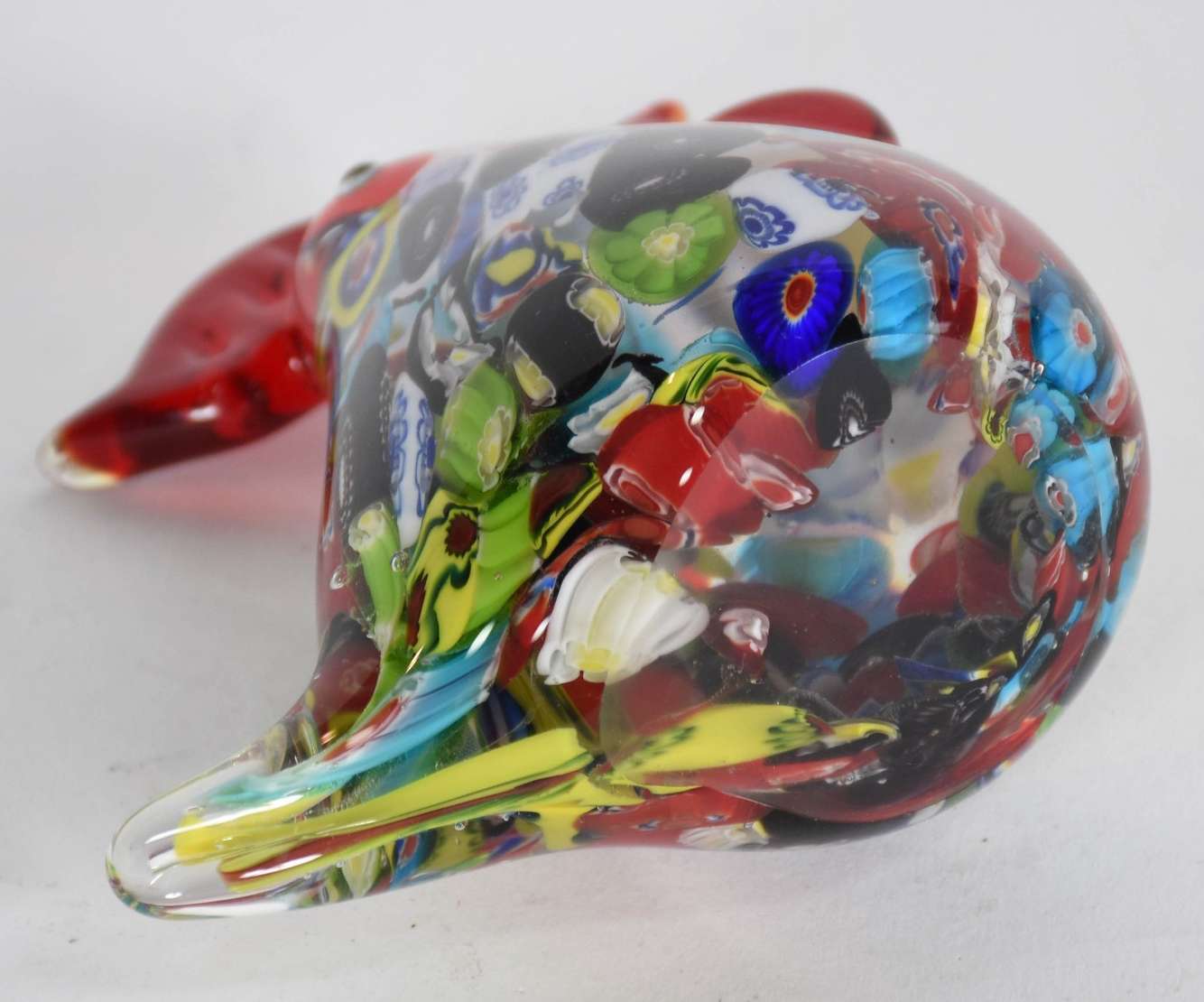 Estatueta de cristal frances satiné representando pato com cria, assinado.