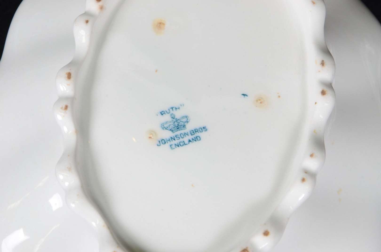 Sopeira de faiança inglesa na cor branca decorada com guirlanda floral azul.