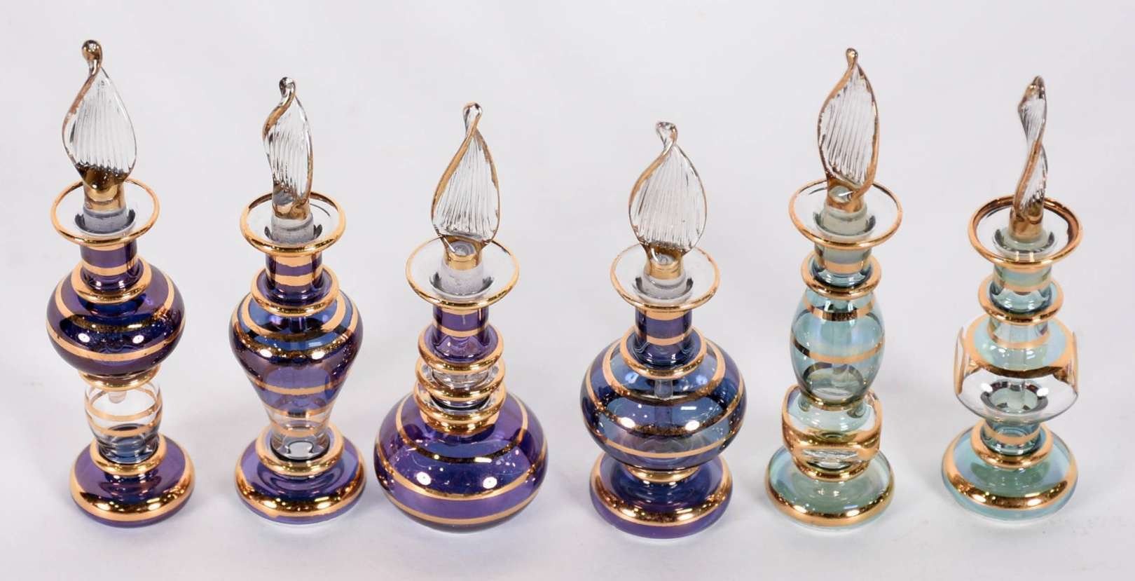 Quatro perfumeiros diversos de vidro.