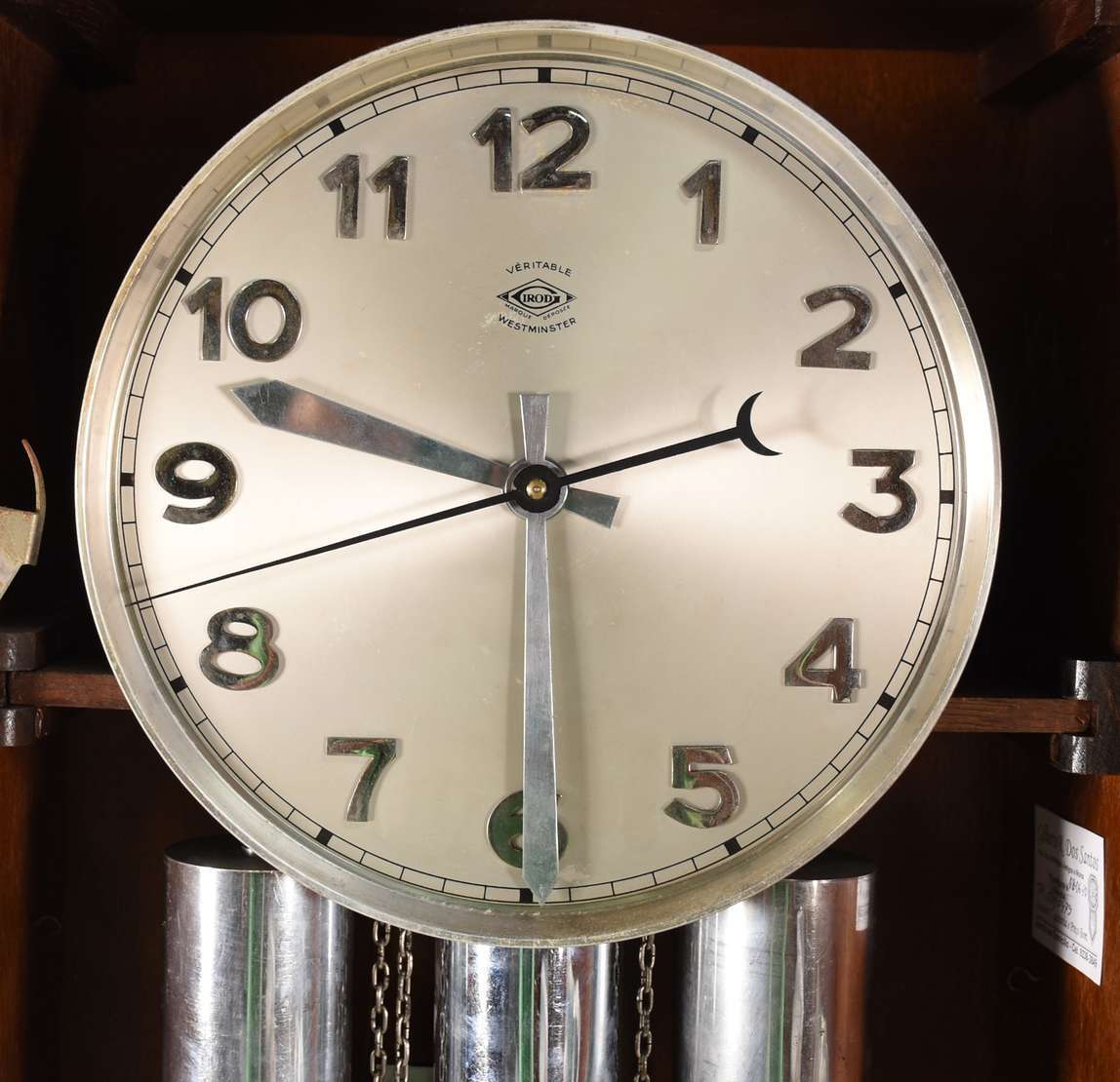 Mesa de jantar de jacarandá feitio oval, tabua extensora embutida, apoio em duplo balaústre terminando em tres pernas...