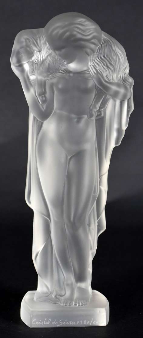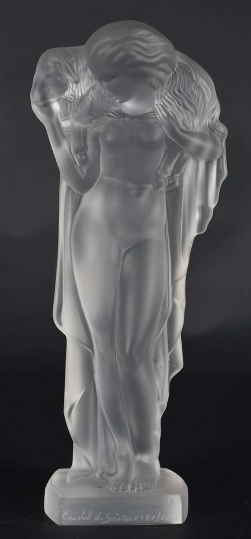 Bowl de porcelana policromada com duas figuras femininas nas laterais, estilo Art Nouveau.