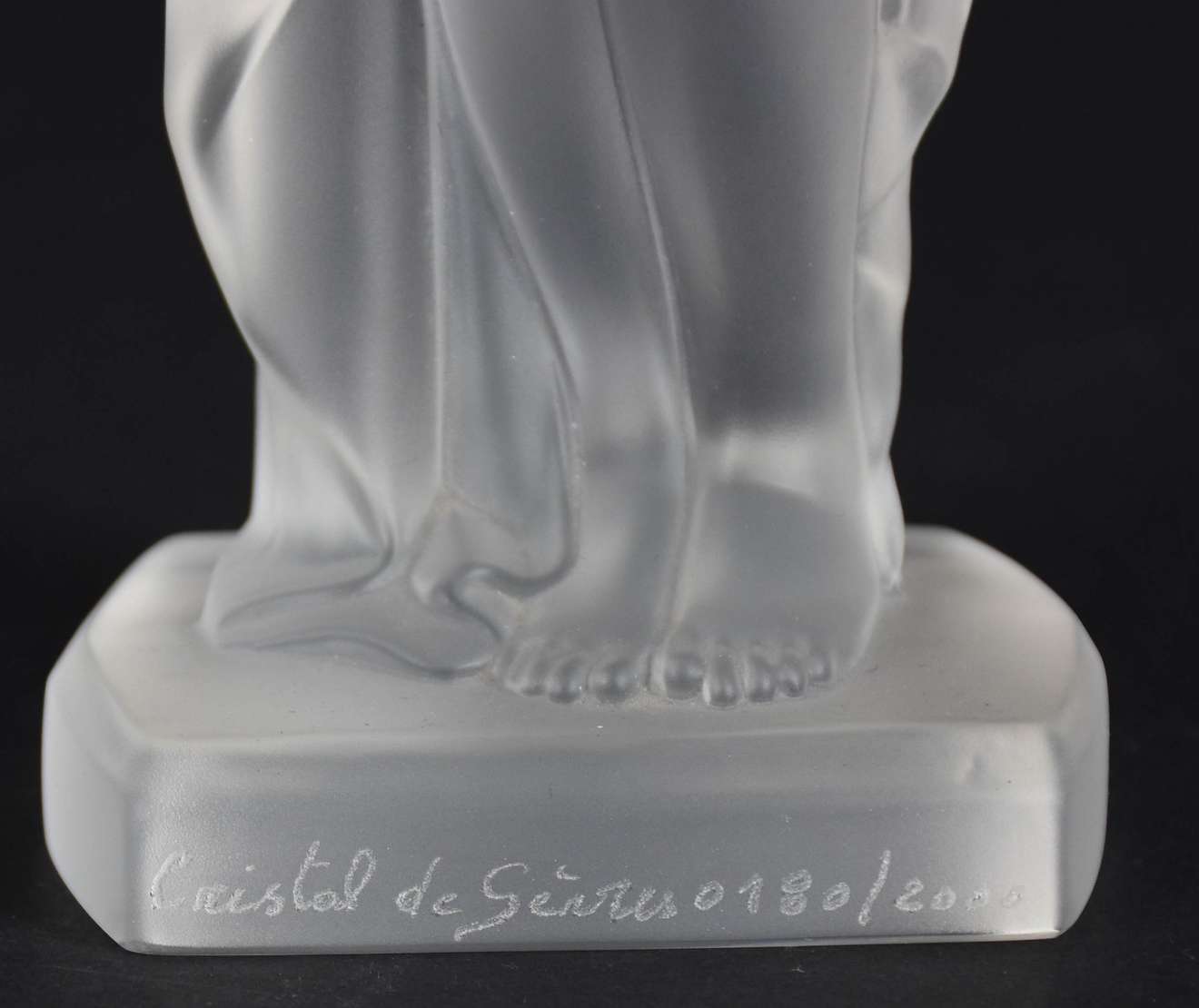 Estatueta de marfim representando Buda risonho, base de madeira. Altura total 13 cm.