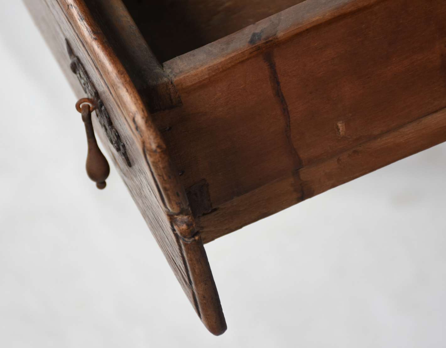 Cômoda/dunquerque de madeira nobre com duas portas trabalhadas em marqueterie, quinas e saia com entalhes, tampo reco...