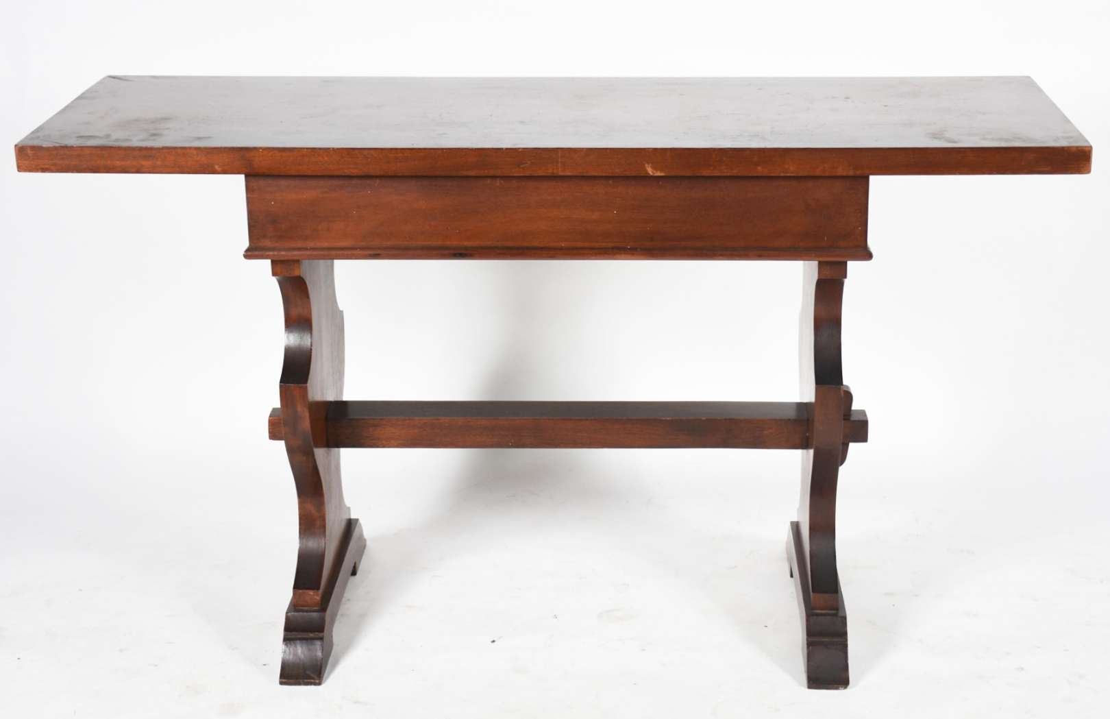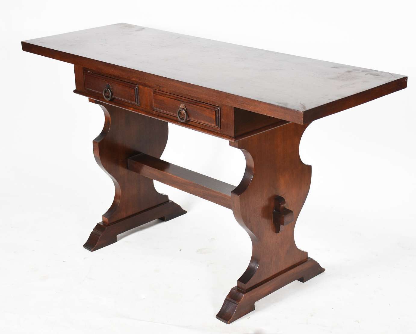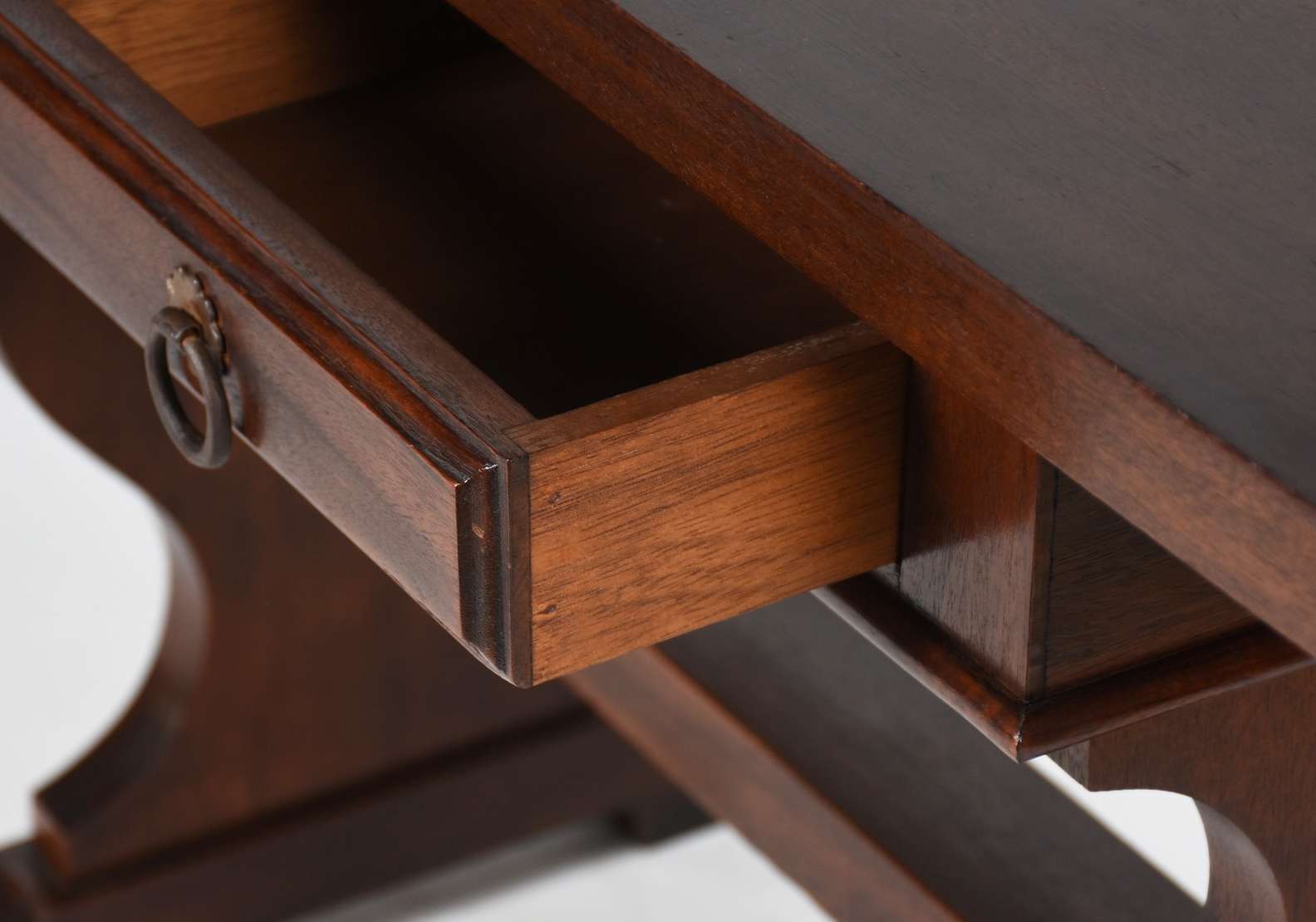 Aparador de madeira nobre com gaveta central, saia com entalhes, pernas retas.