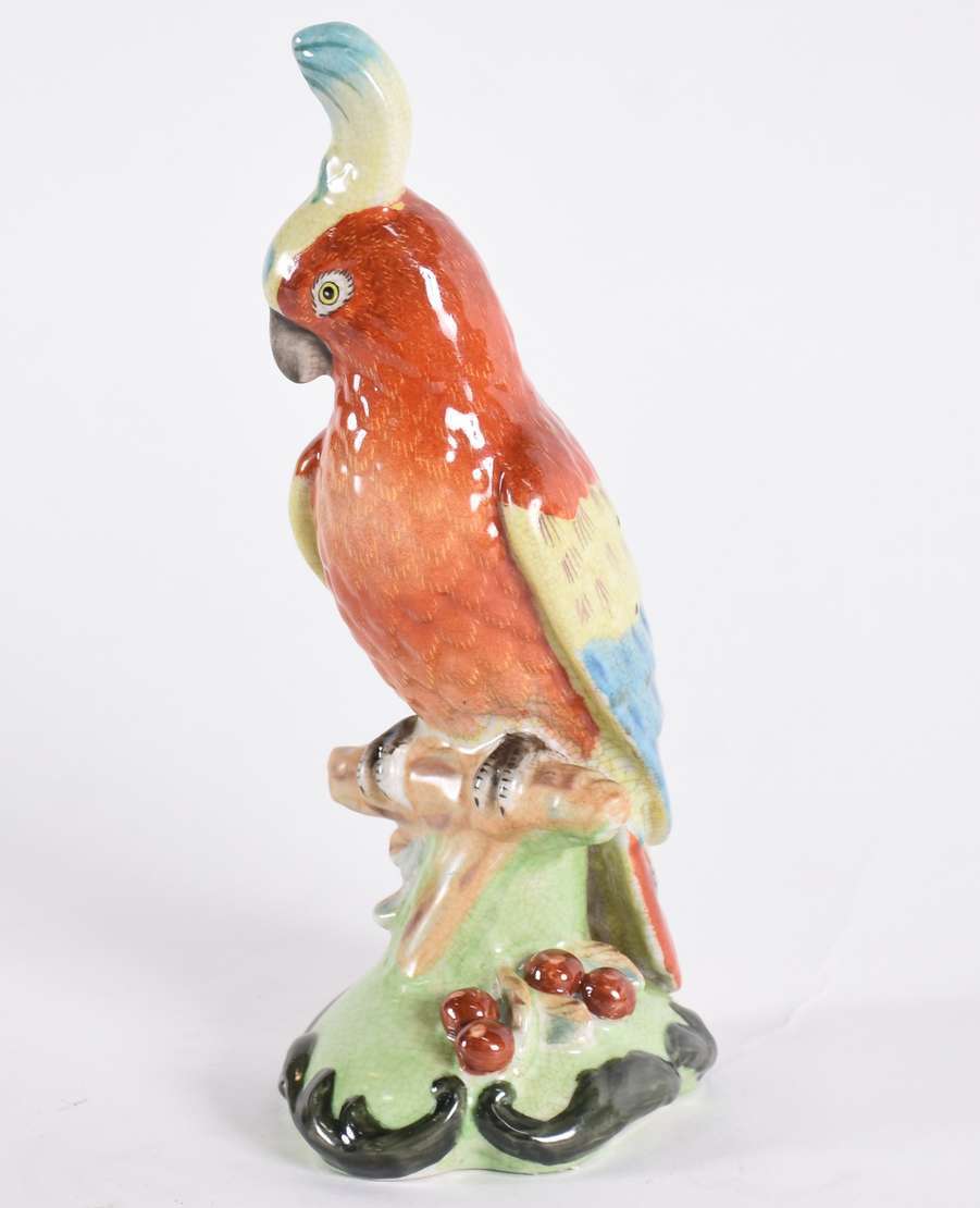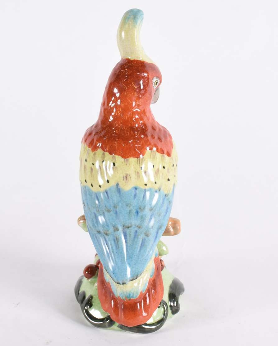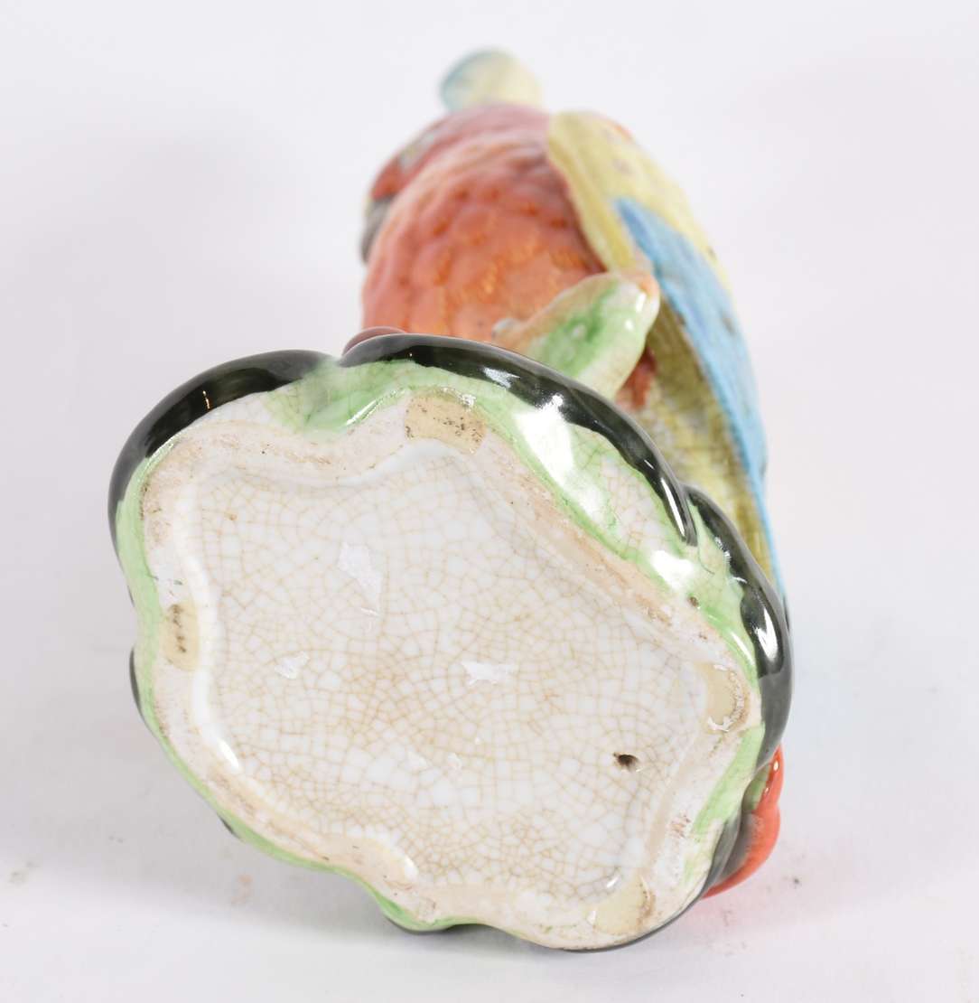 Estatueta de porcelana repres. cachorro, acompanha base de madeira com ladrilhos.