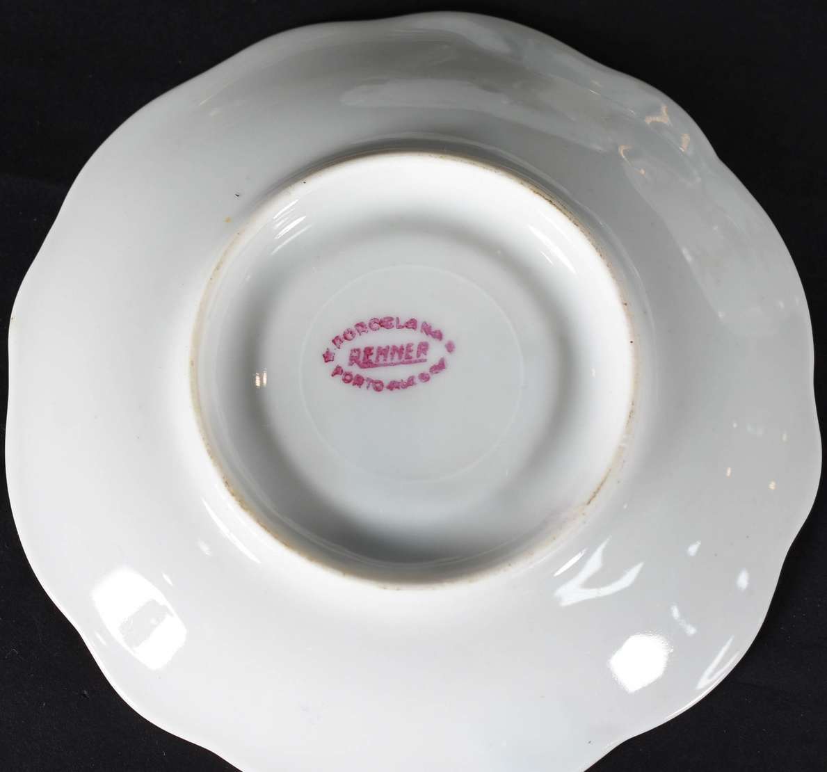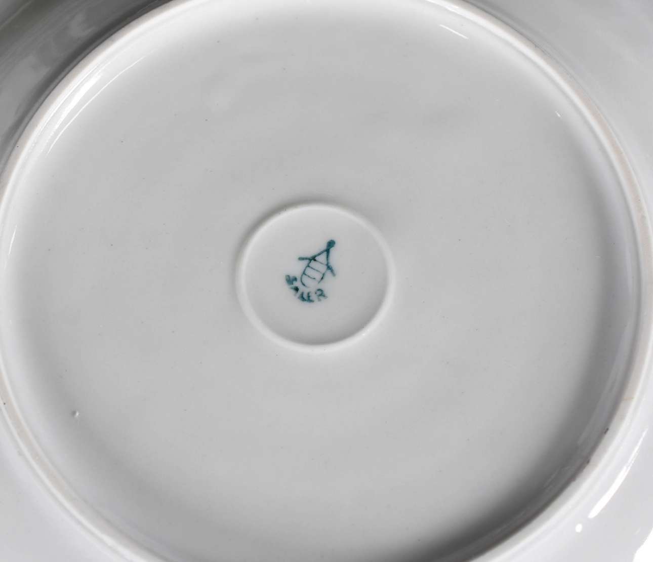 Xícara com pires de porcelana francesa de Pilluvuyt, monogramada.