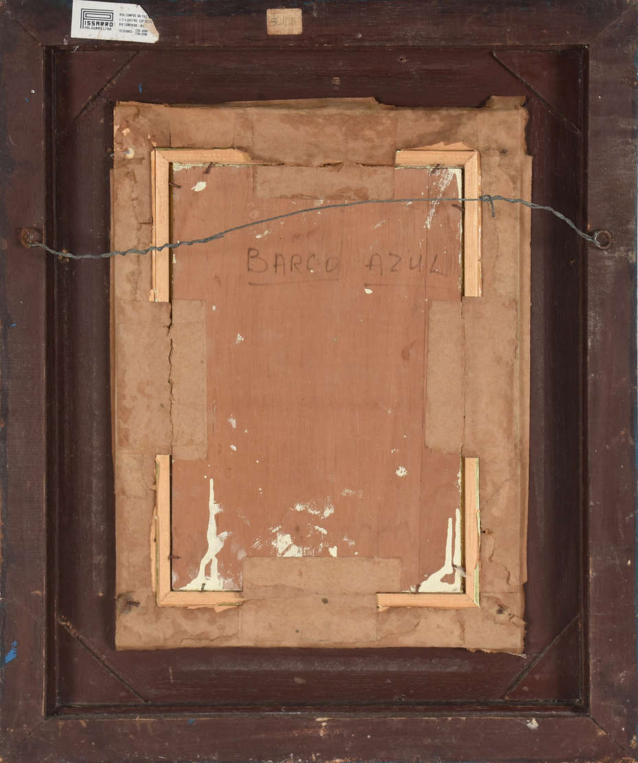 Placa de madeira entalhada e pintada a mão. Assinada. (com cupim)
