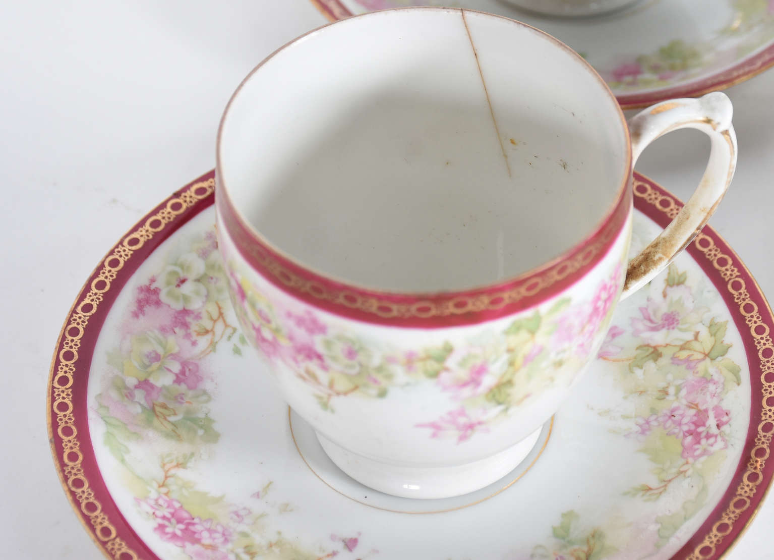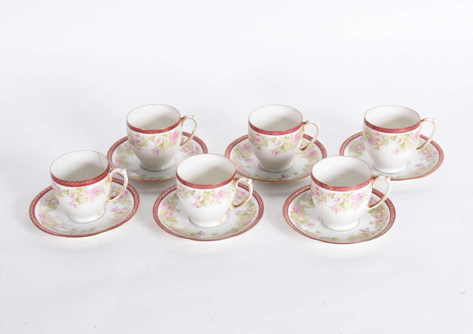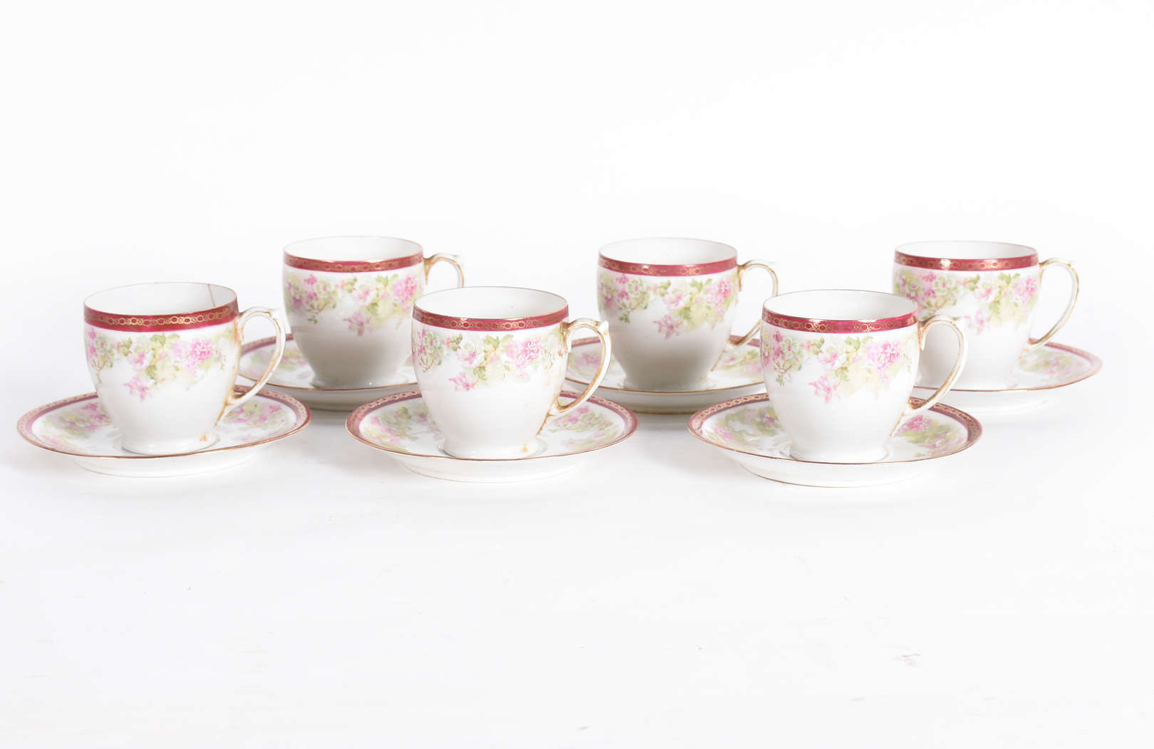 Xícara com pires de porcelana francesa de Pilluvuyt, monogramada.