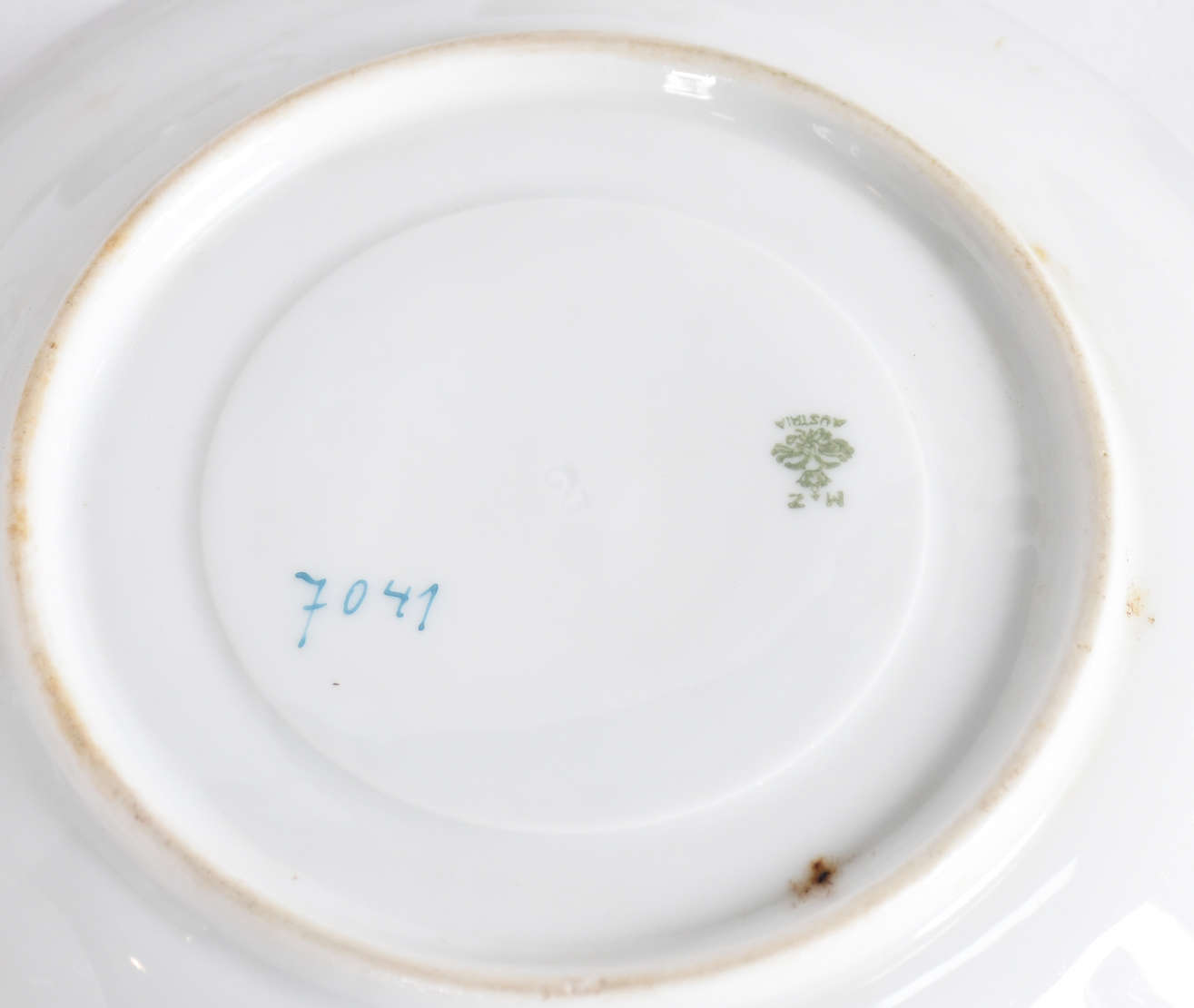 Prato de sobremesa de porcelana francesa de Pilluvuyt, monogramada.