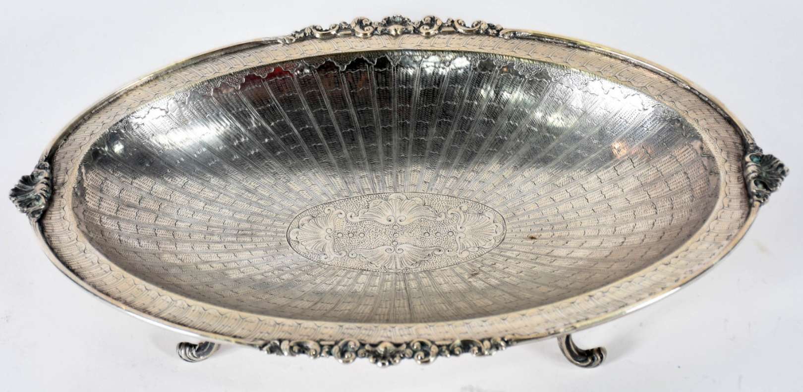 Cinco peças diversas de cristal, sendo 2 fruteiras com pé, 2 bowls e 1 travessa para rocambole.