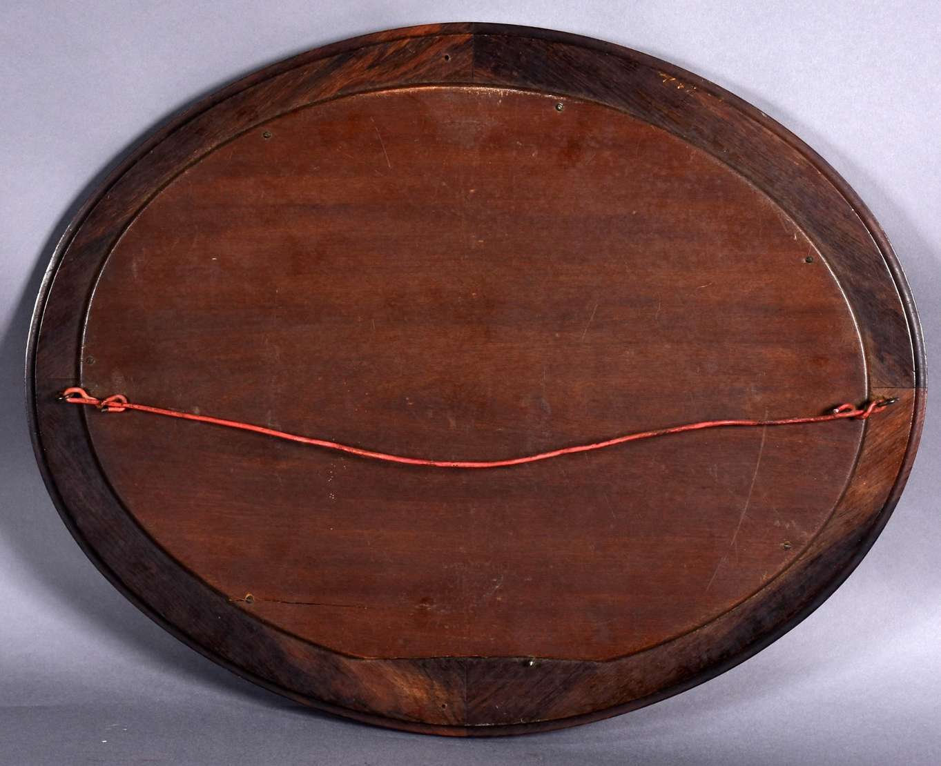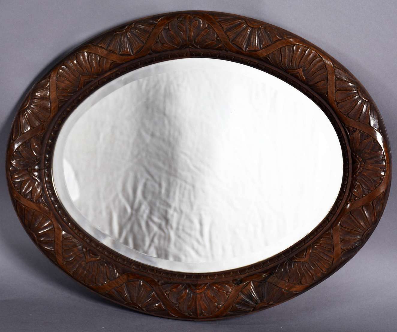Armário de madeira nobre com 2 portas, 3 gavetões e 4 gavetas encimada por porta com espelho oval. Procedência ingles...