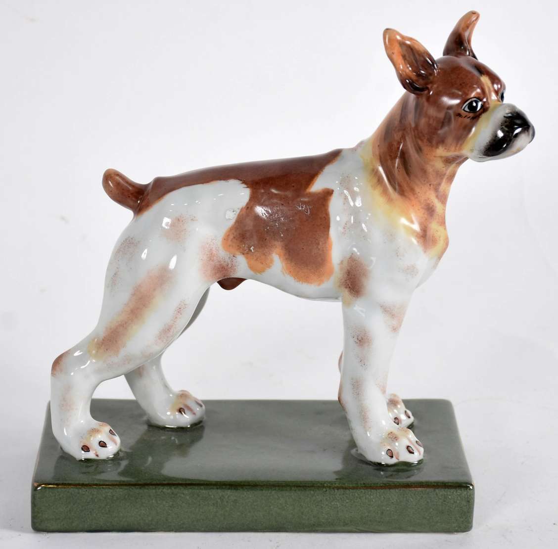 Estatueta de resina de poliéster representando dinossauro, assinada.