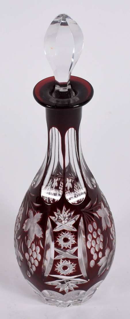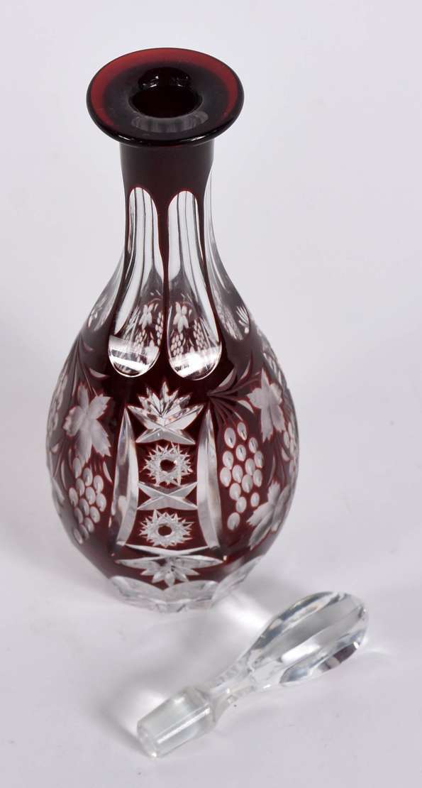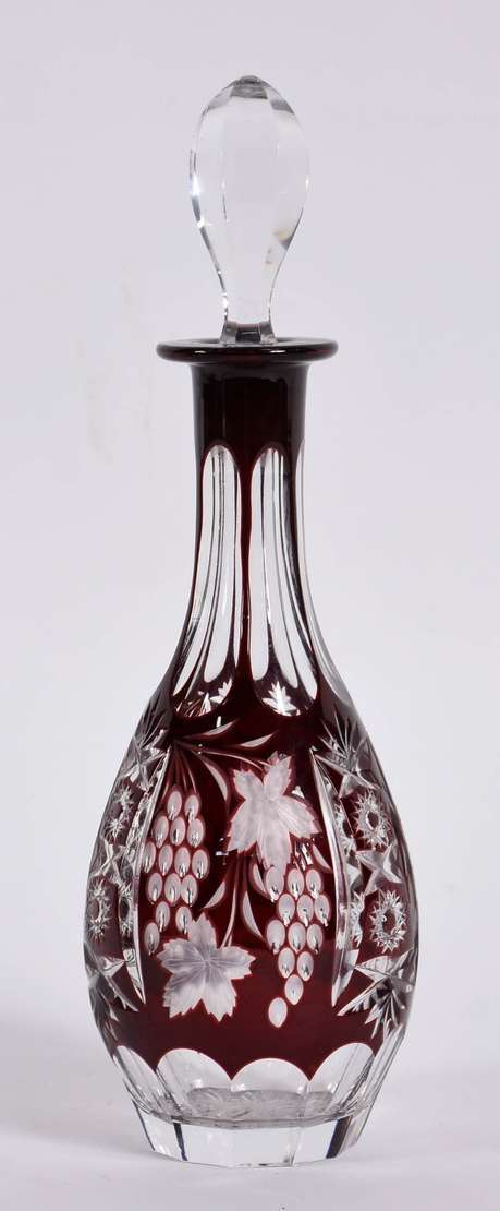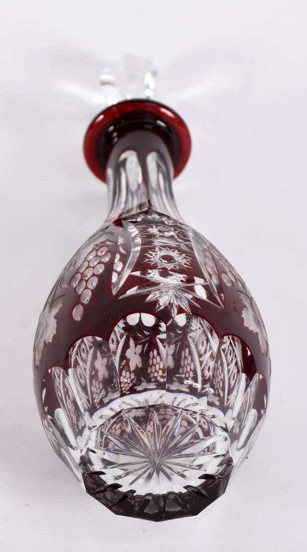 Conjunto para toillete de cristal frances ricamente lapidado, doublé rubi, composto de 8 peças sendo grande bacia, p...