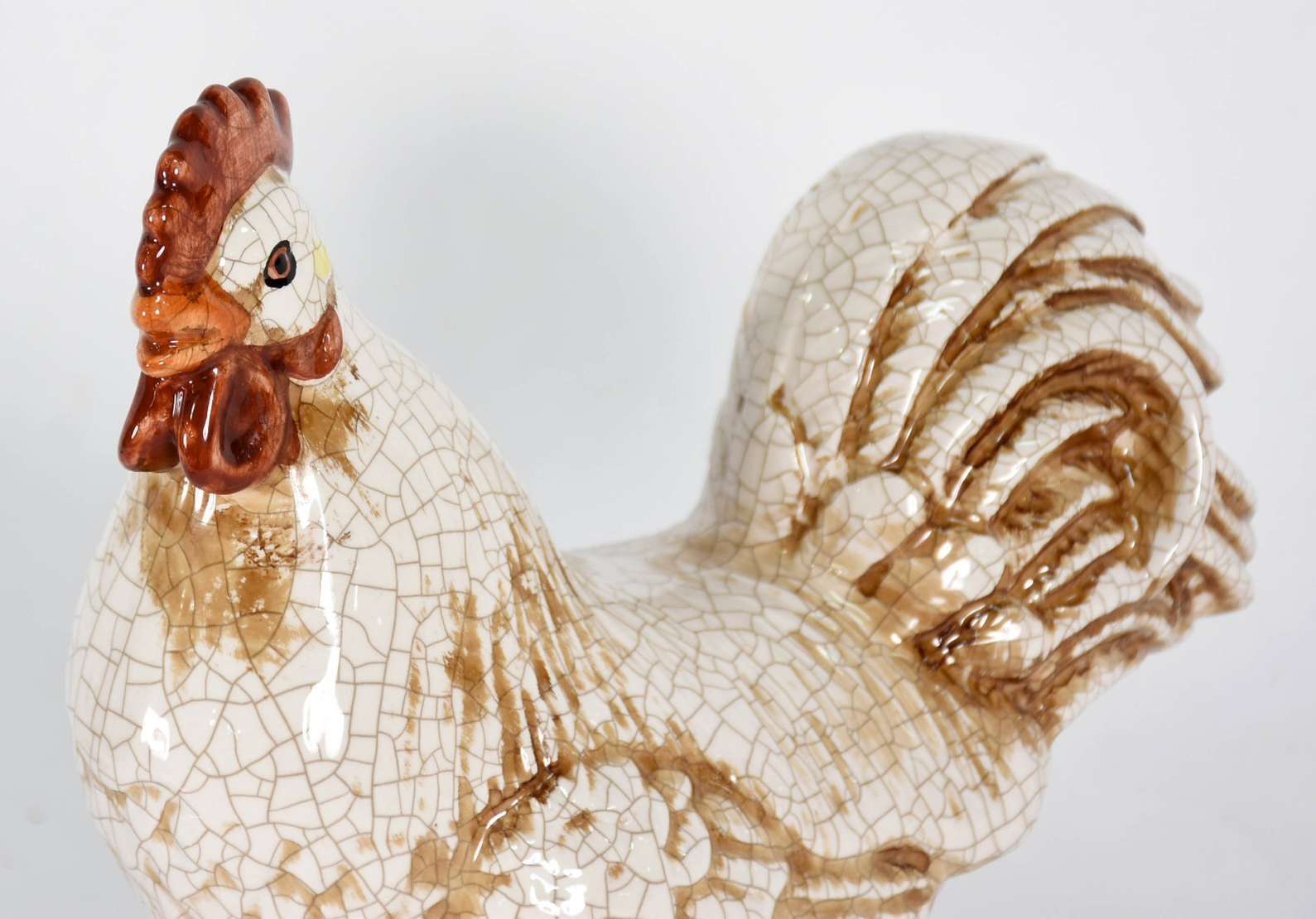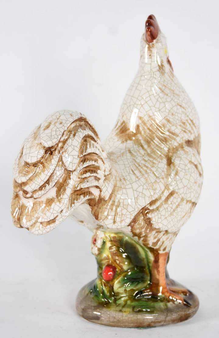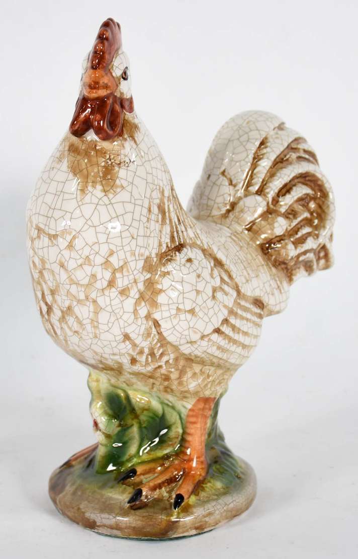 Estatueta de resina de poliéster representando galinha (faltando pedaço do bico).