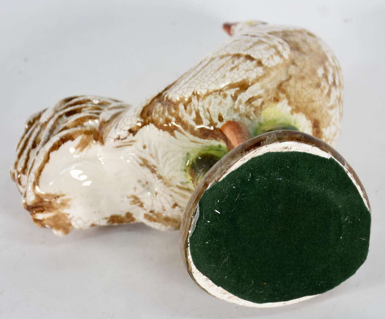 Par de estatuetas de porcelana representando pássaros com coroa (1 com asa quebrada)
