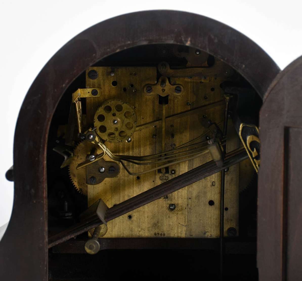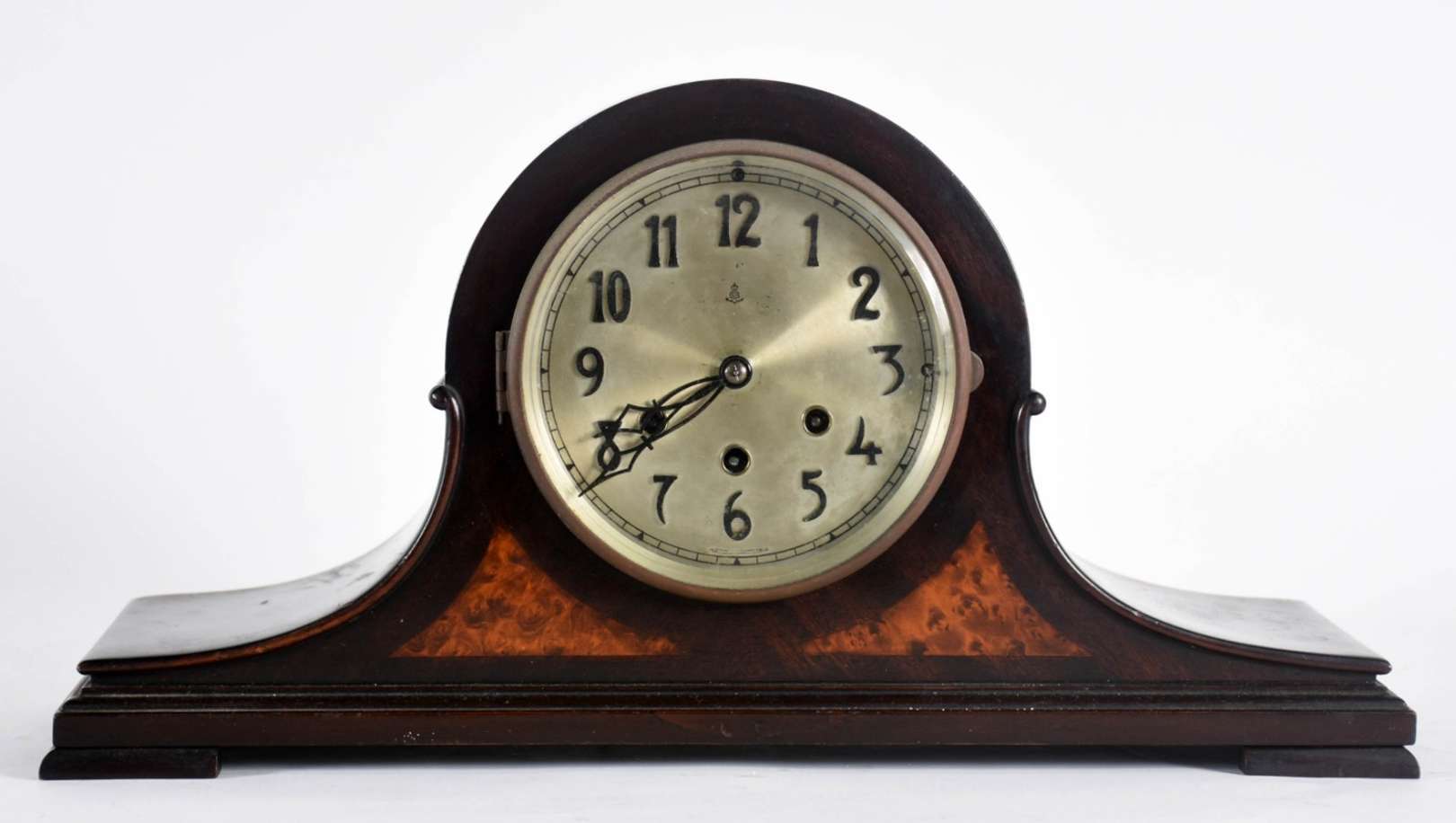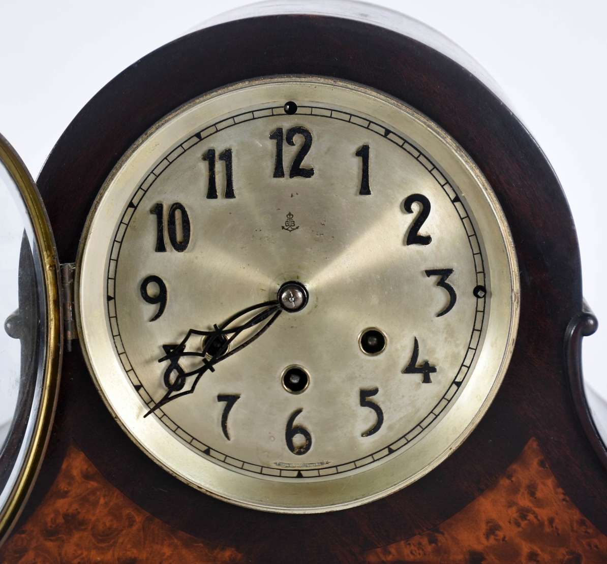 Armário de madeira nobre com 2 portas, 3 gavetões e 4 gavetas encimada por porta com espelho oval. Procedência ingles...