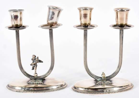 Par de castiçais de prata contrastada 800 mls. para 2 velas cada. (por motivos de segurança a peça não fica na loja)
