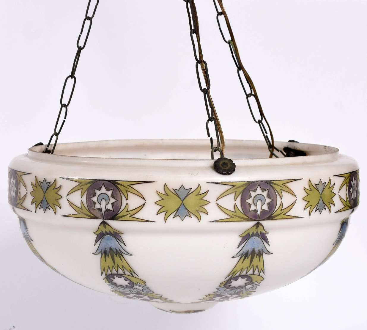 Lustre de metal patinado com flores policromadas, para 6 luzes, mangas de vidro.
