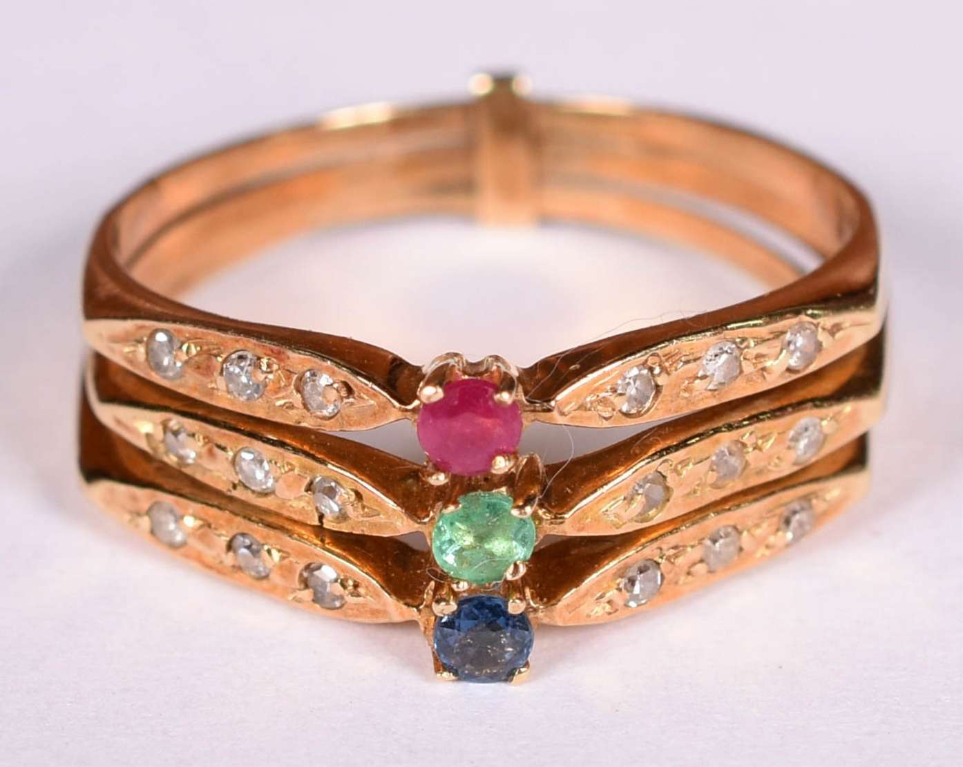Anel de ouro 18 k com 18 brilhantes e 3 pedras, aro 21(Por motivos de seguranças as peças não encontram-se na loja).