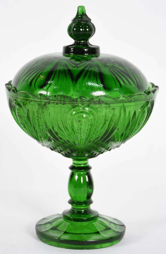 Compoteira lágrima de pé alto em vidrão verde bandeira.