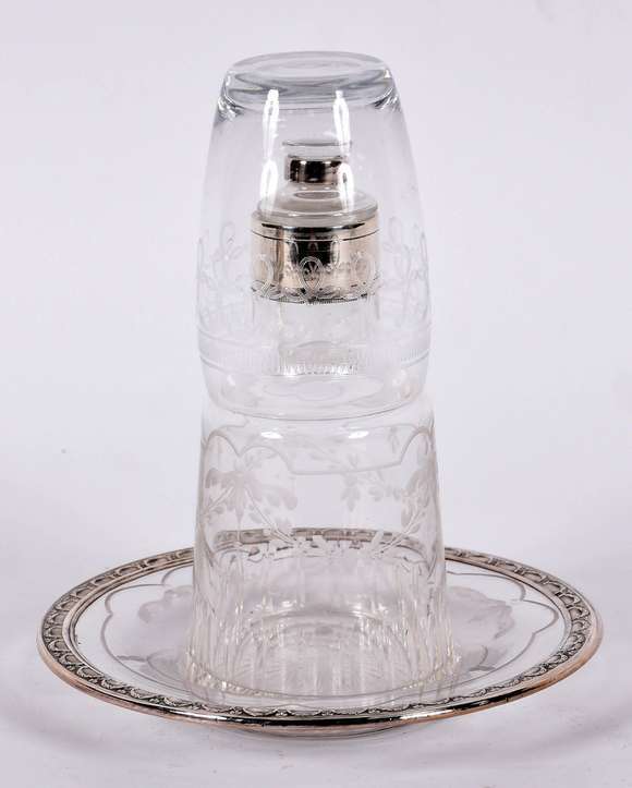 Verre d'eau com presentoir de cristal frances com detalhes em prata de lei. Copo adaptado.