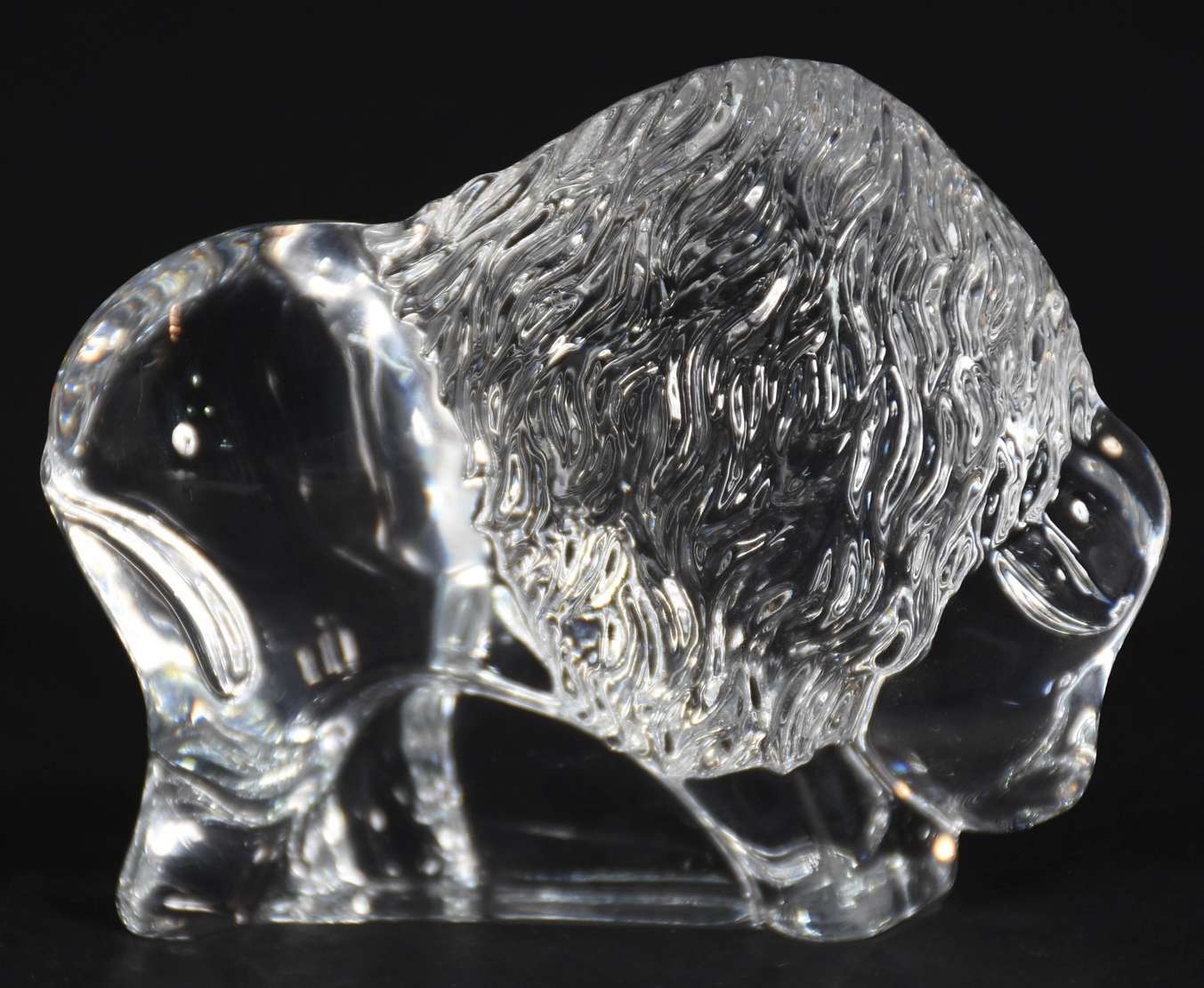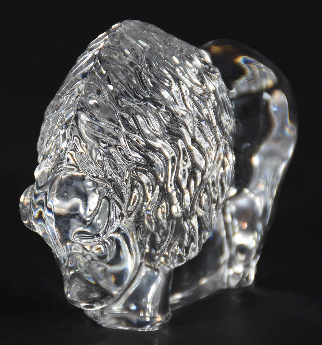 Estatueta representando bisão de cristal francês "Royal Rock", marcado na base.