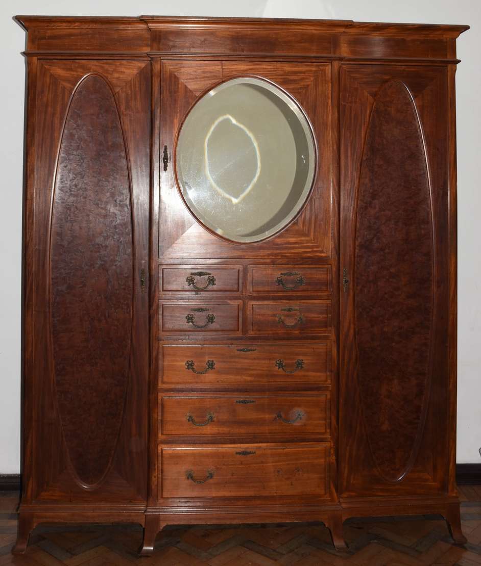 Móvel comoda/toilette de madeira nobre com dois gavetões e duas gavetas, tampo de mármore encimado por espelho bisota...