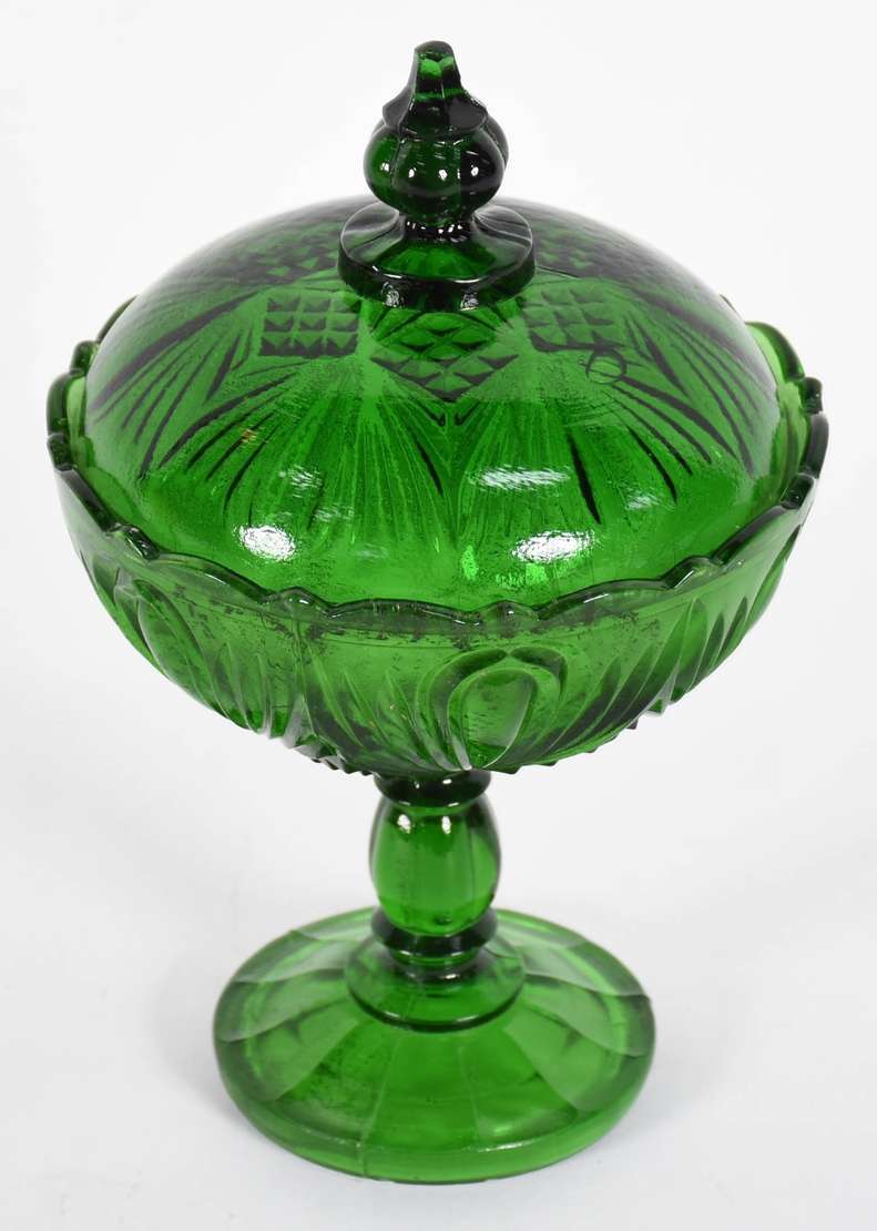 Par de compoteiras de cristal frances Saint Louis lavrado com guirlandas (uma com bicado).