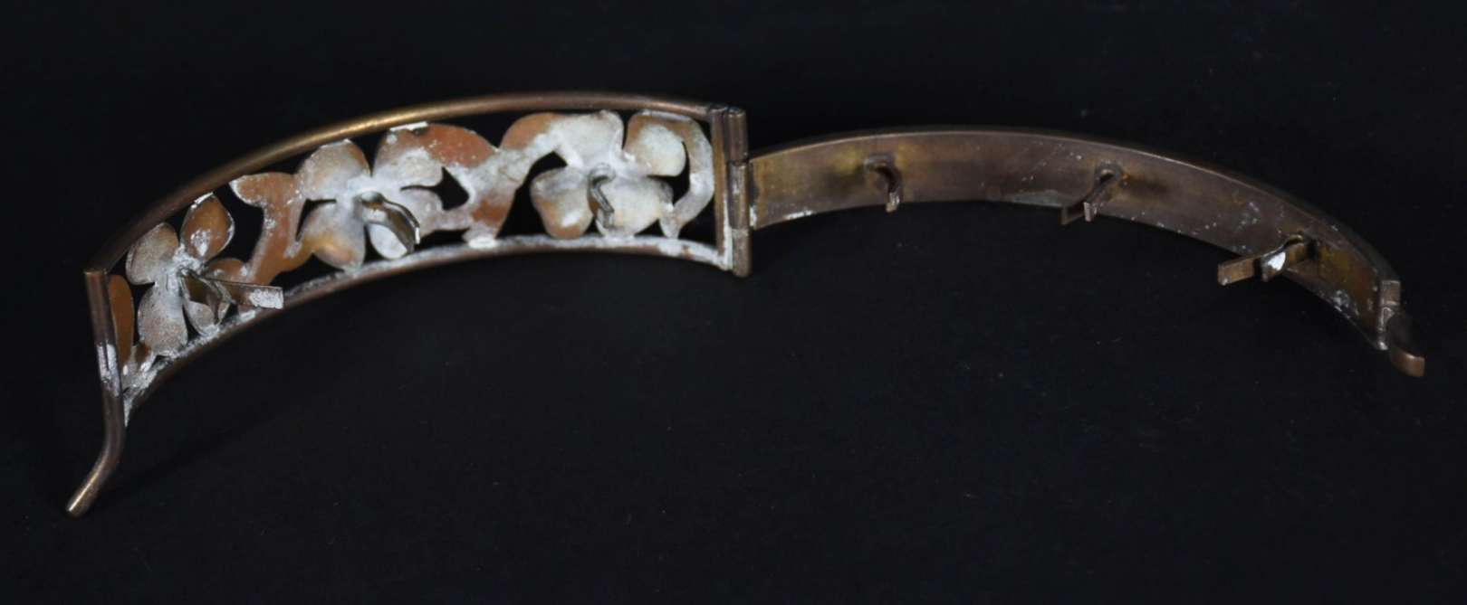 Diversas peças de metal, sendo: tinteiro com pena dourada e cabo de madre pérola (quebrado); duas caixinhas porta píl...