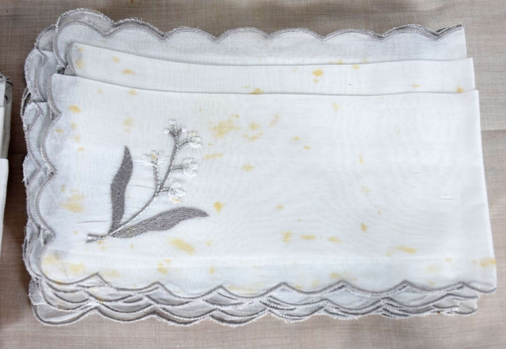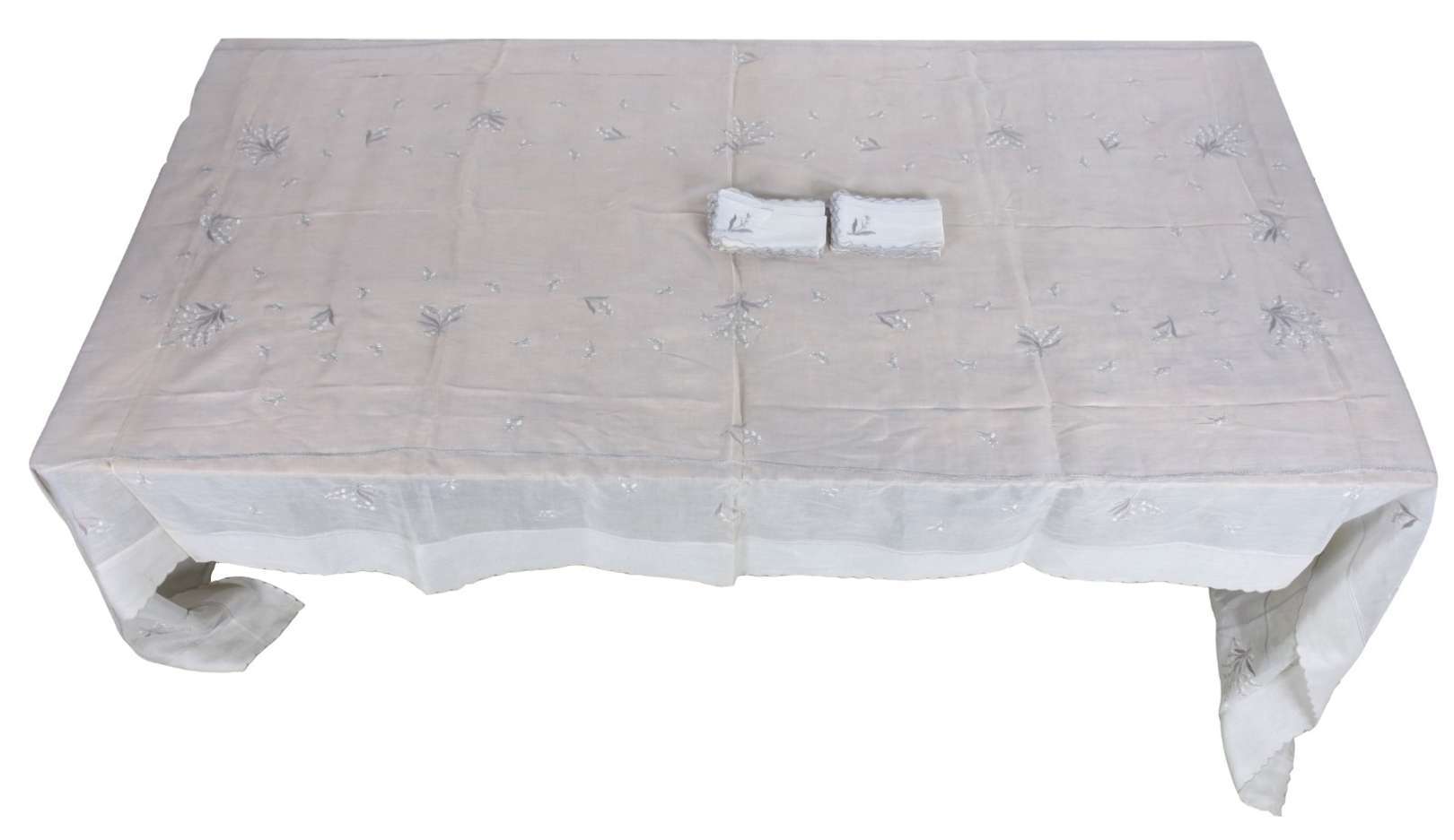 Toalha de mesa em tecido rústico nos tons de azul com 12 guardanapos.