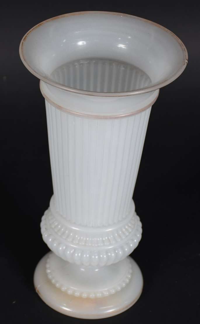 Vaso opalinado branco no feitio de mão com tocha.