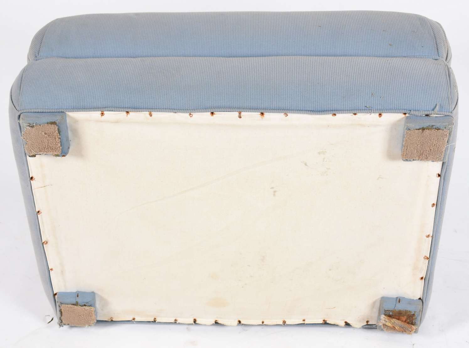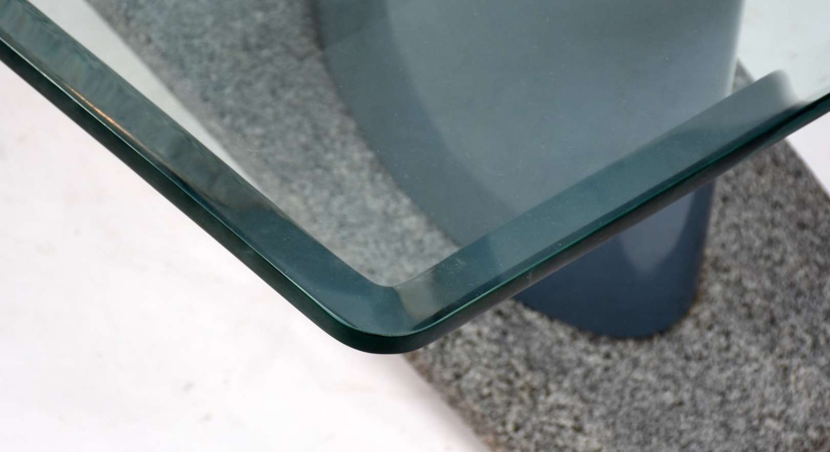 Mesa lateral feitio quadrado com tampo branco. Resquício de selo da Casa de móveis TABA, a primeira fábrica de móveis...