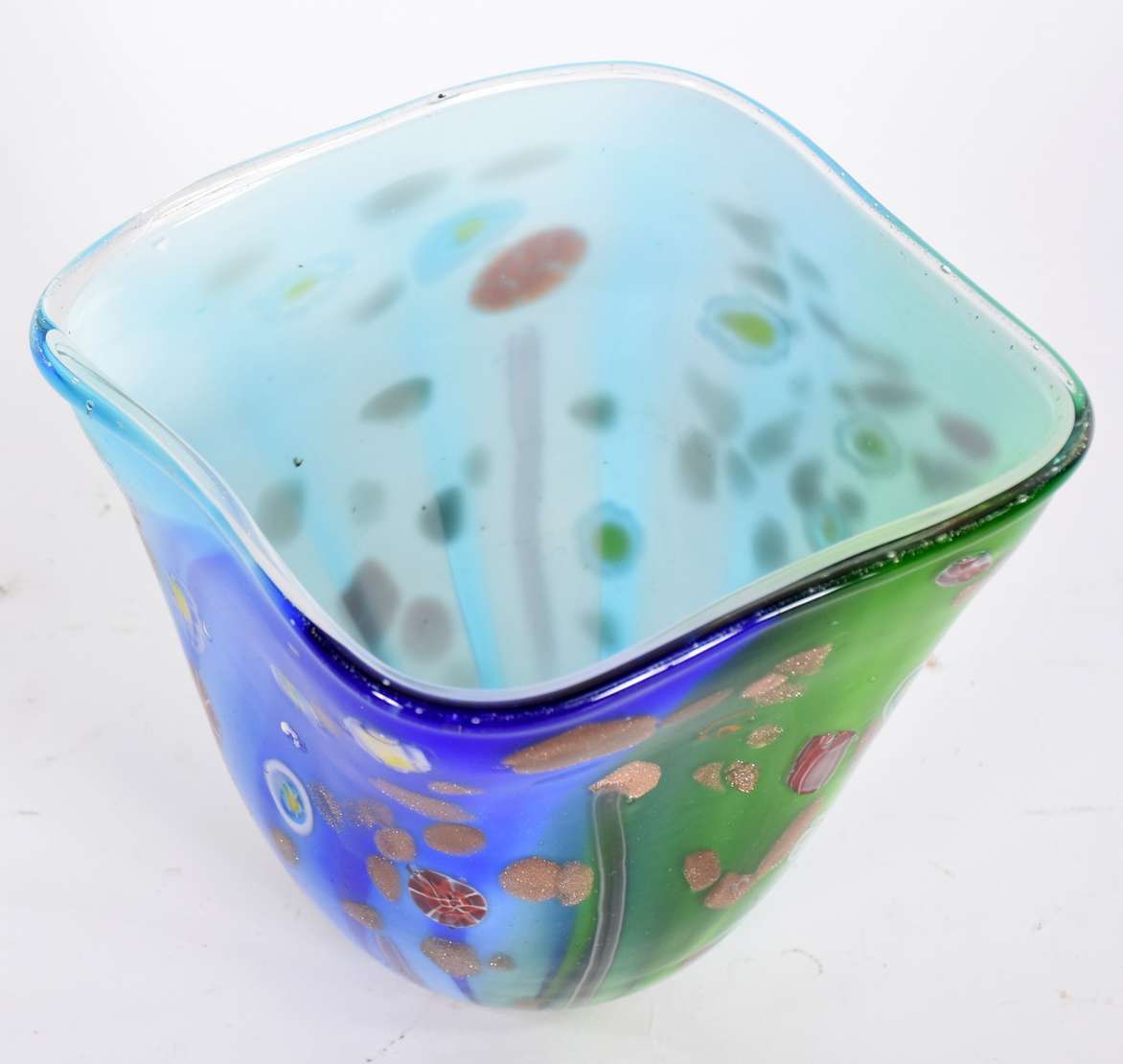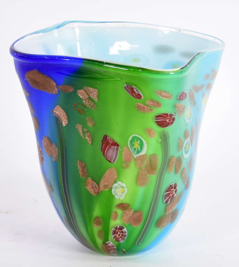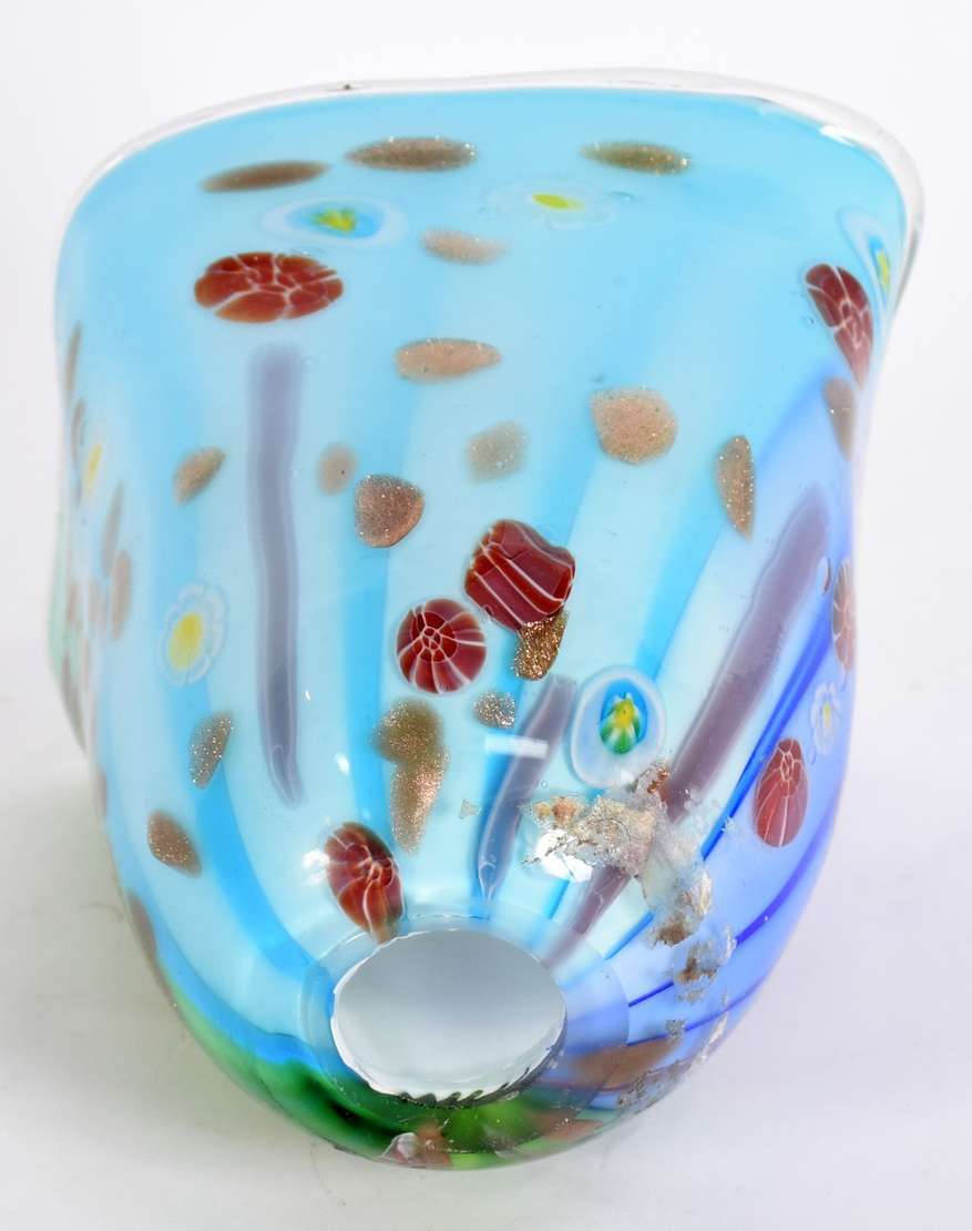 Vaso de pasta de vidro nas cores rosa e azul mesclado, anos 30.