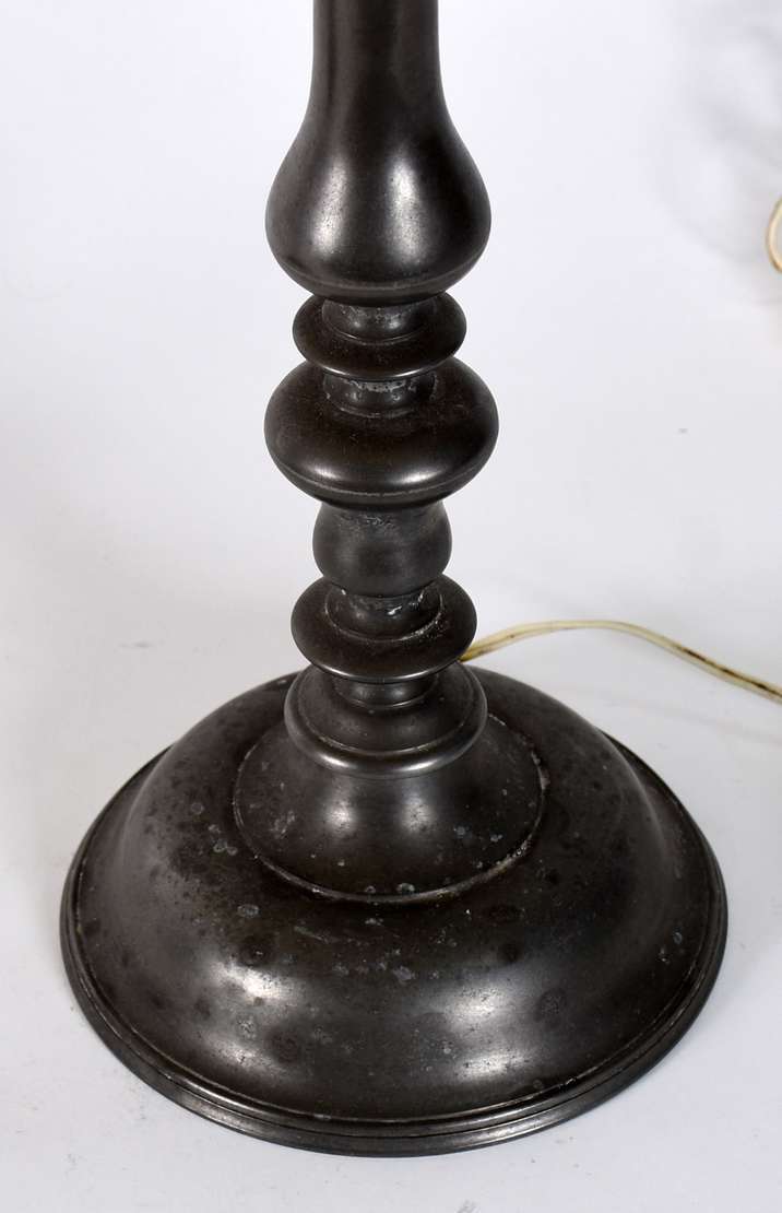 Mesa auxiliar de madeira nobre, tampo recortado e trabalhado em parqueterie, apoiado em coluna central dupla terminan...