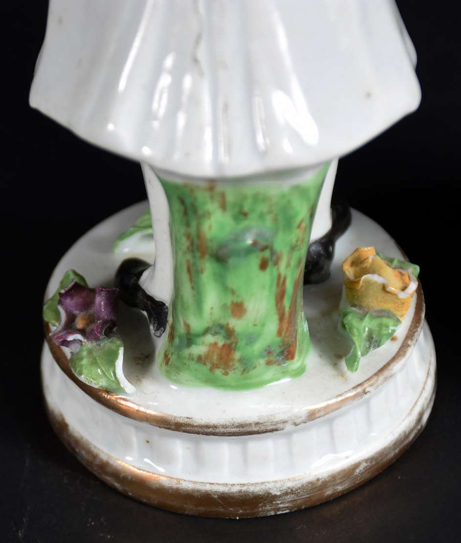 Porta cartão de porcelana policromada ao gosto Art Nouveau representando figura feminina com folhas e flores. Marca n...