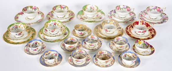Conjunto de xícaras de faiança inglesa "PARAGON", ricamente decoradas com flores em diversos tons, sendo: Dez xícaras...