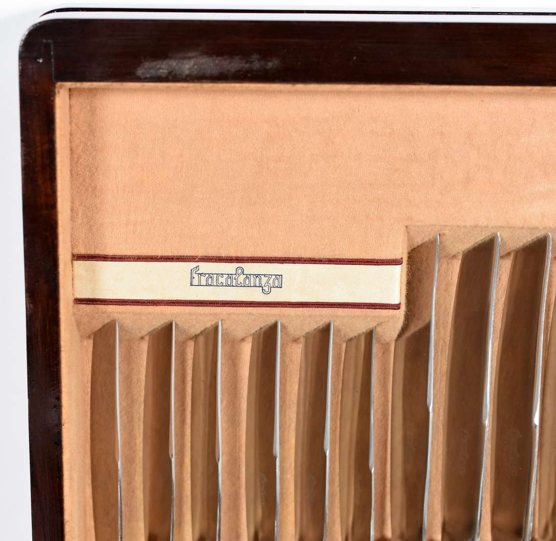 Faqueiro para peixe com cabos de prata, composto de 12 facas e 12 garfos (só o cabo é de prata e talvez tenha enchime...