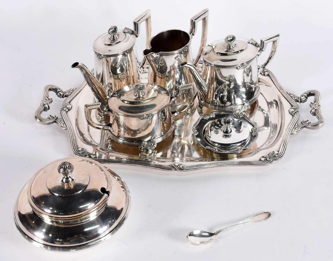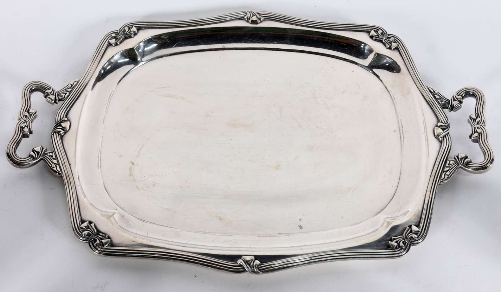 Baixela de jantar de metal prateado WOLFF composto de: Sopeira, legumeira com tampa e seis travessas. Total de oito p...