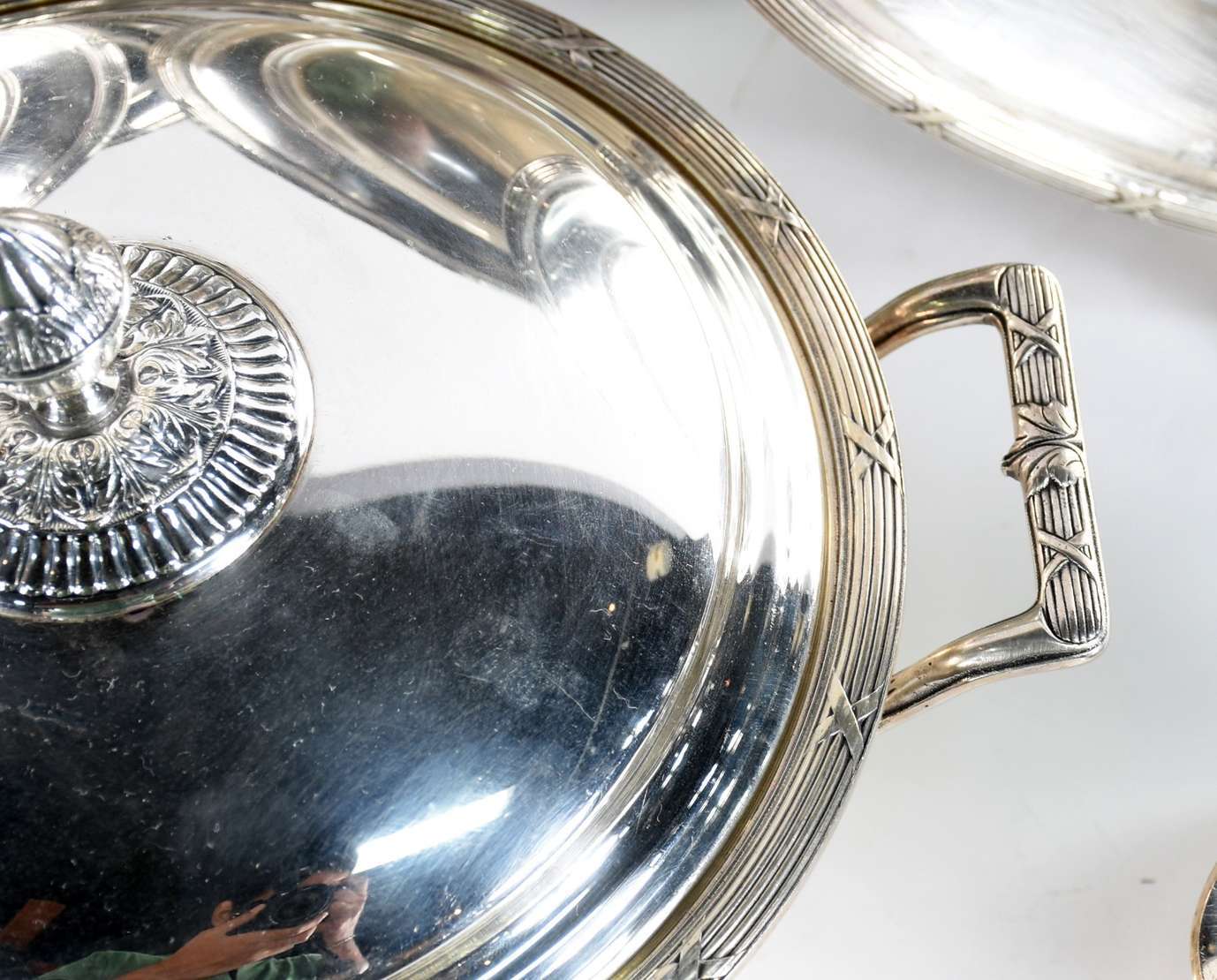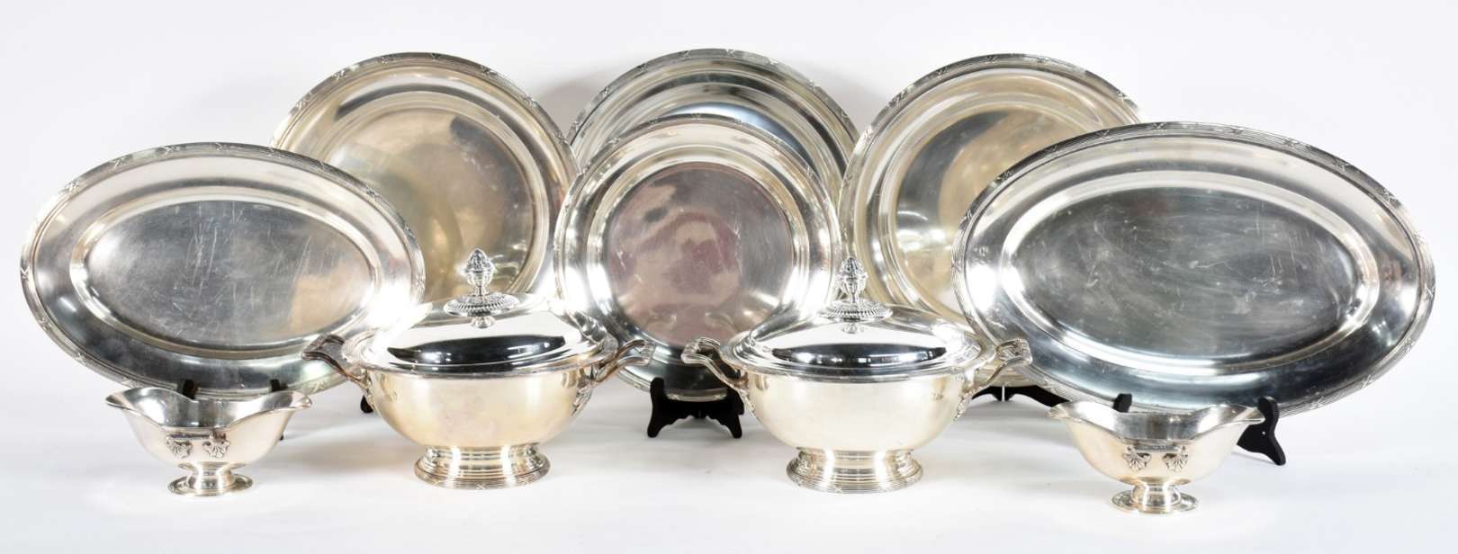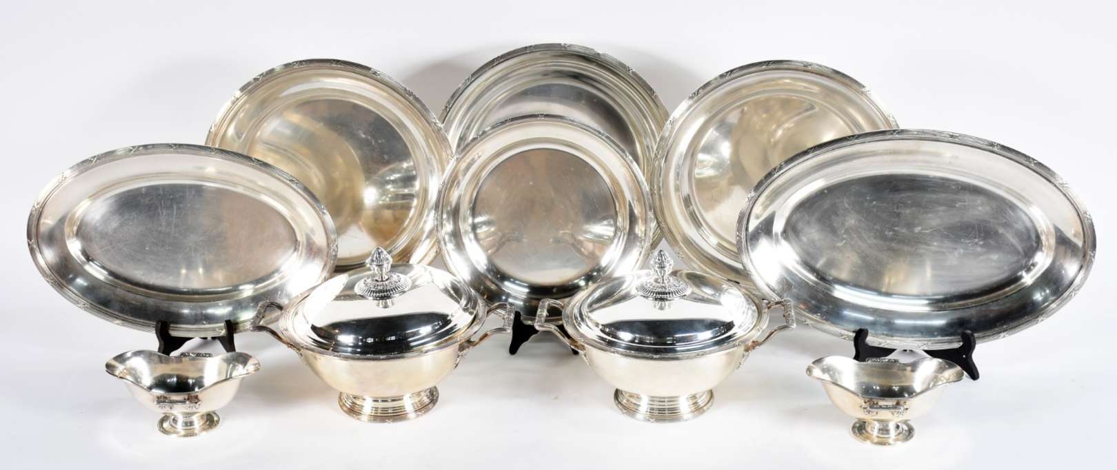 Serviço de jantar de porcelana RENNER composto de: 21 pratos rasos, 9 pratos fundos, 20 prato de sobremesa, 3 traves...