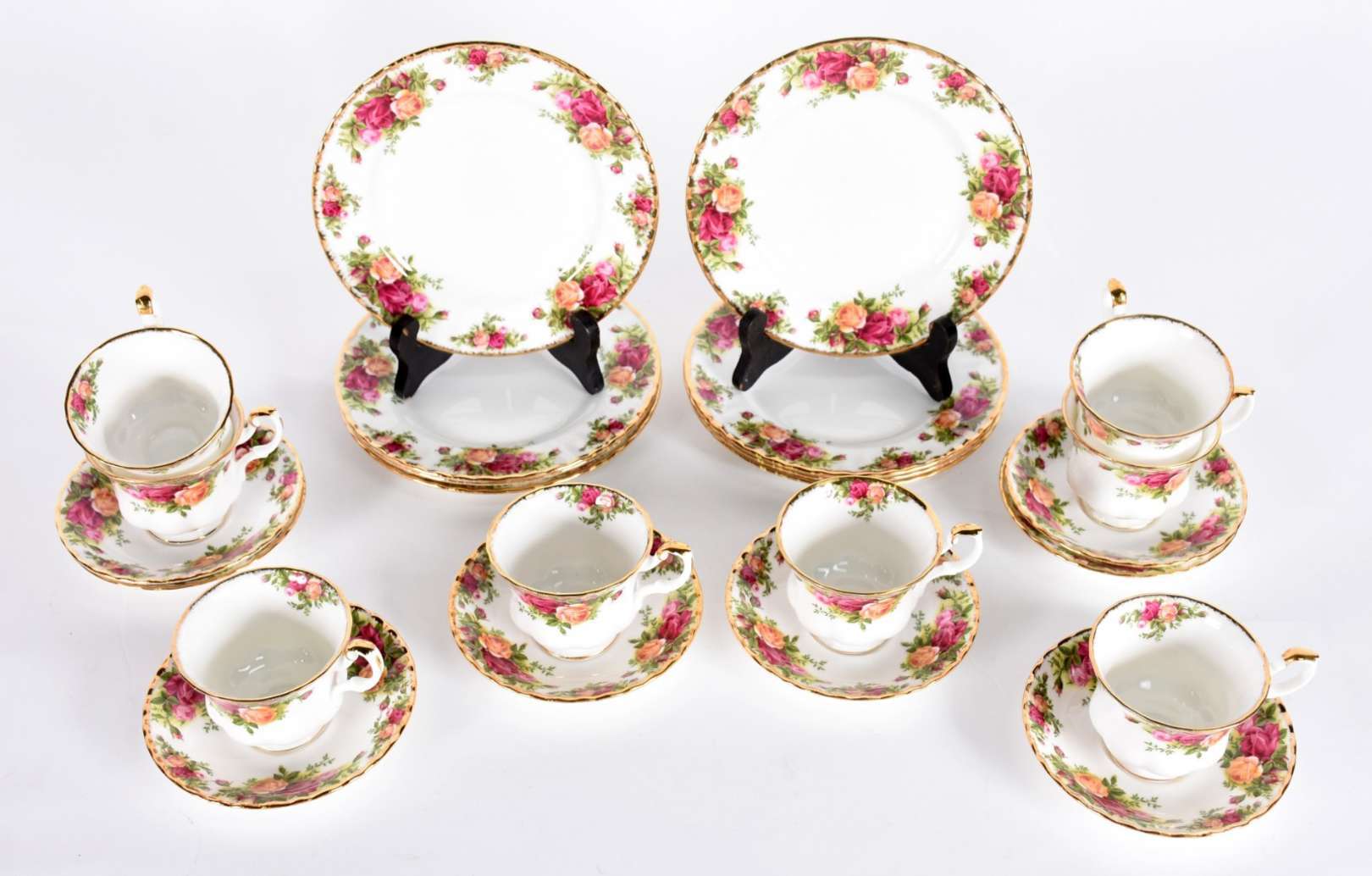 Serviço de porcelana portuguesa Vista Alegre, para café, chá e jantar, composto de: 6 pratos rasos (1 lascado), 6 pra...