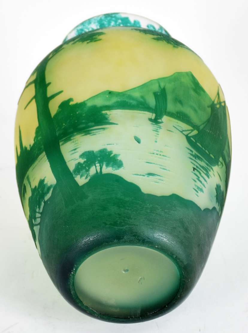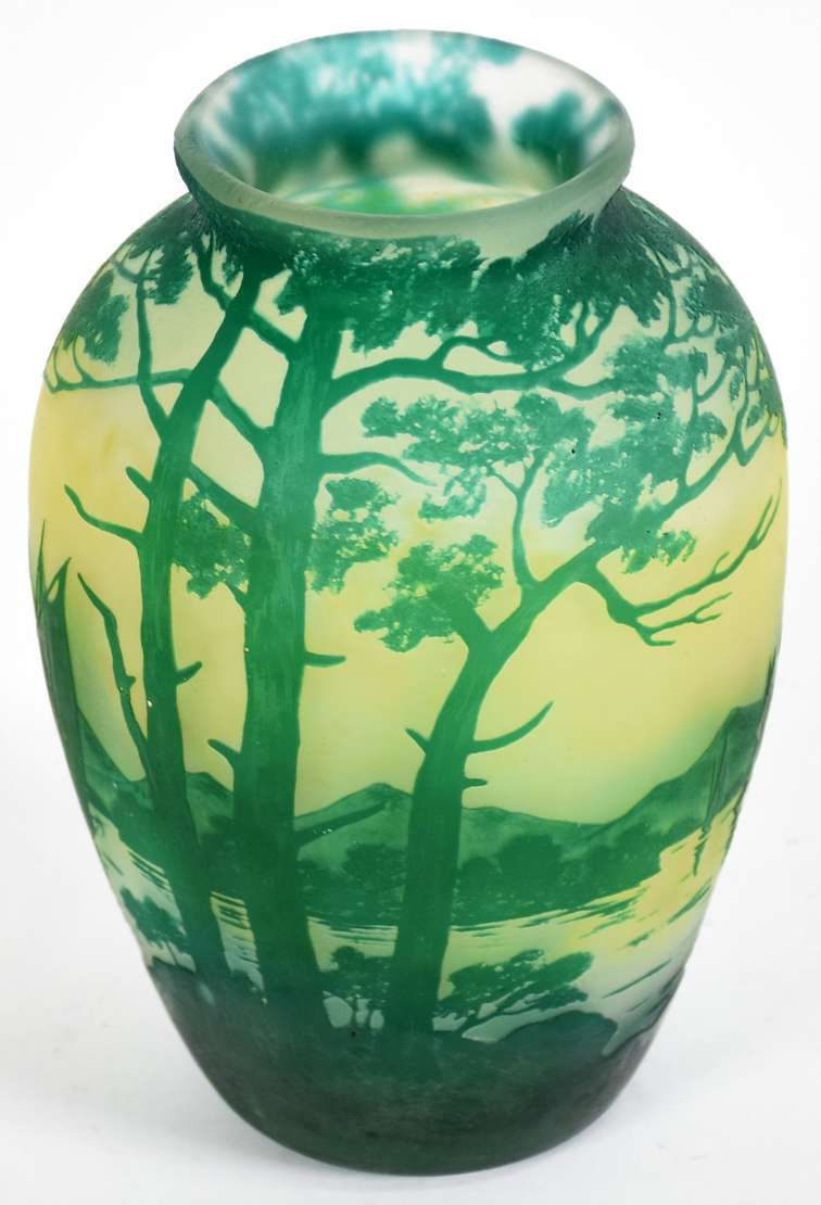 Vaso de pasta de vidro nas cores rosa e azul mesclado, anos 30.
