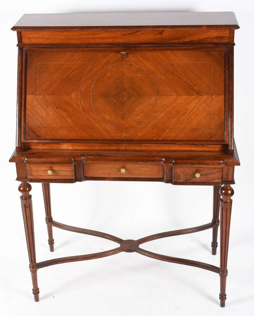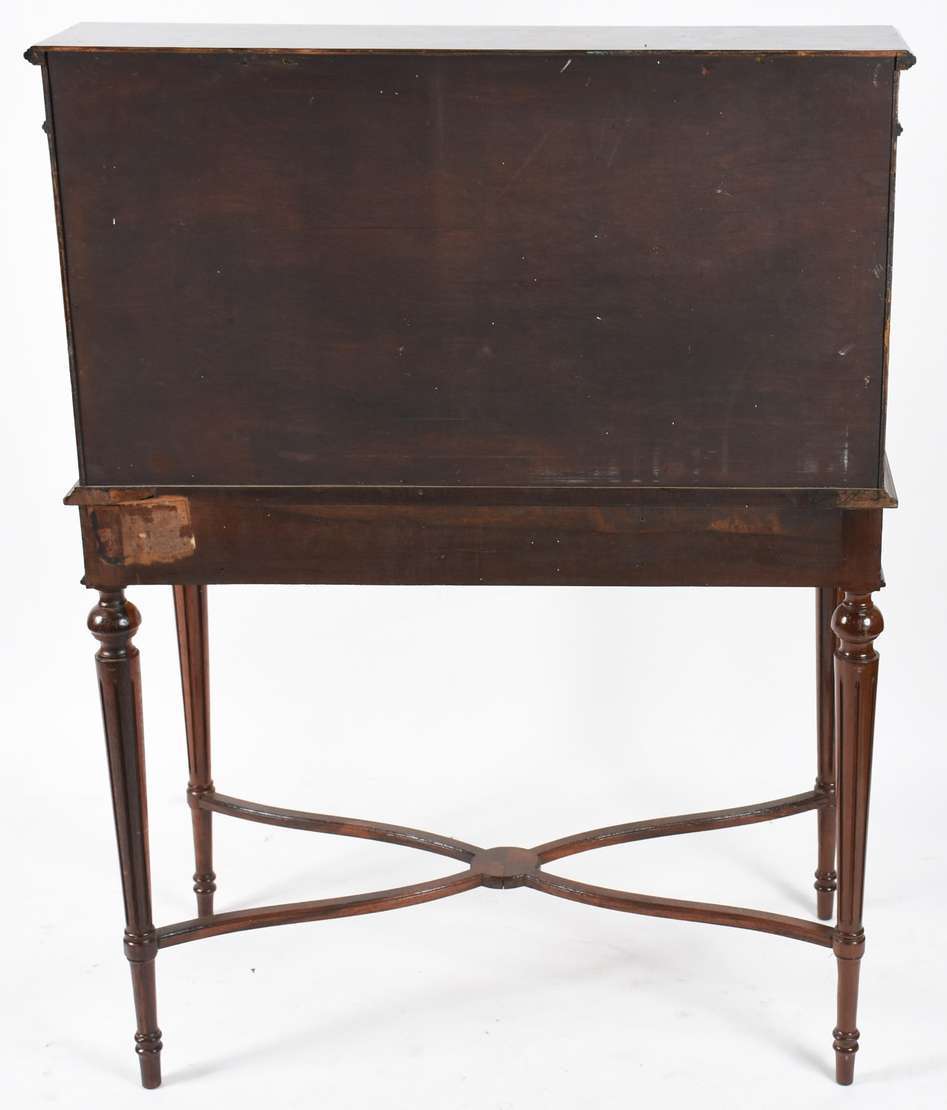 Par de mesinhas laterais de madeira nobre estilo francês, grades de metal dourado, uma gaveta cada e dois platôs infe...