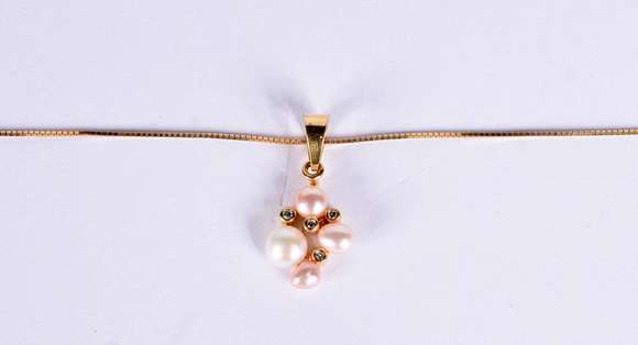 Gargantilha de ouro 18 k, pingente com perolas e quatro brilhantes (Por motivos de seguranças as peças não encontram-...