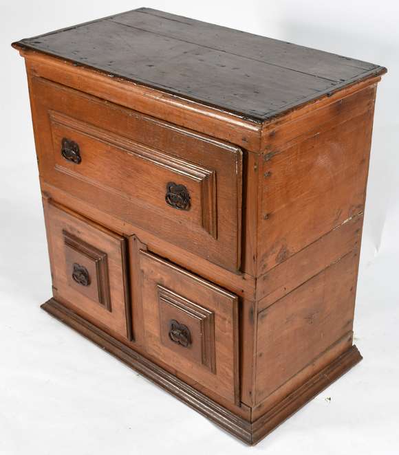 Comoda de madeira nobre com cinco gavetões, sendo a primeira com frente articulada e duas gavetinhas "mais finas" na ...