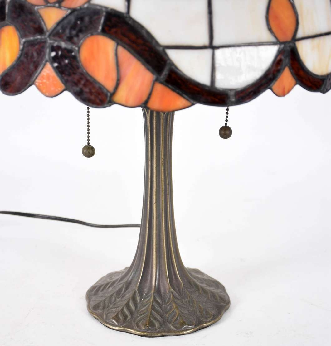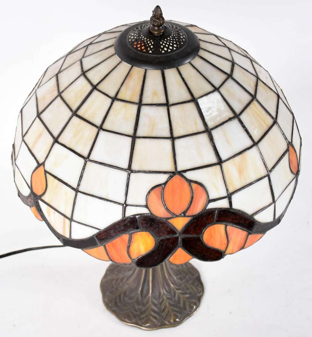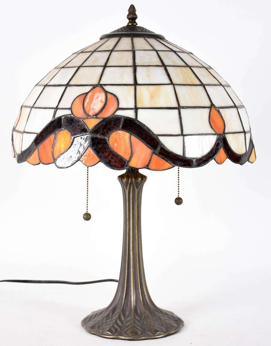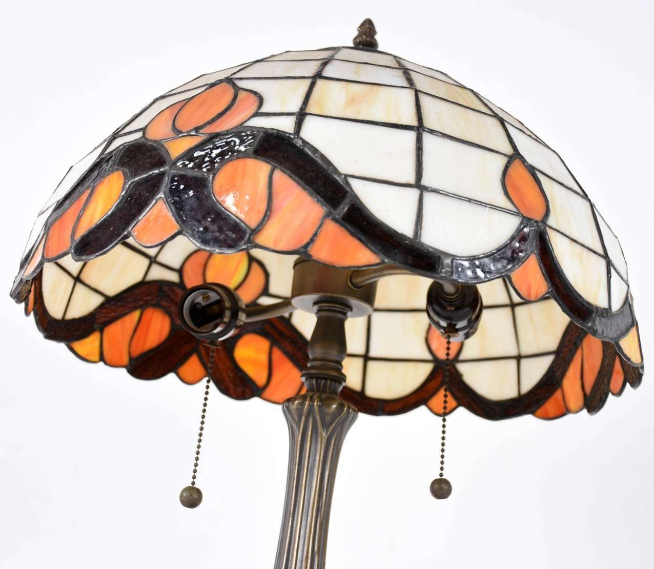 Par de abatjoures com base em metal e cúpulas de vidro colorido . Assinadas.
