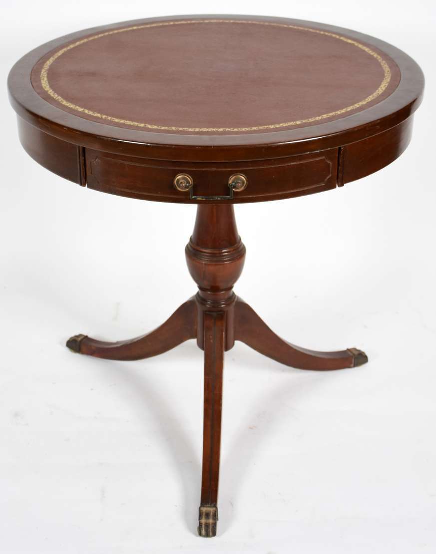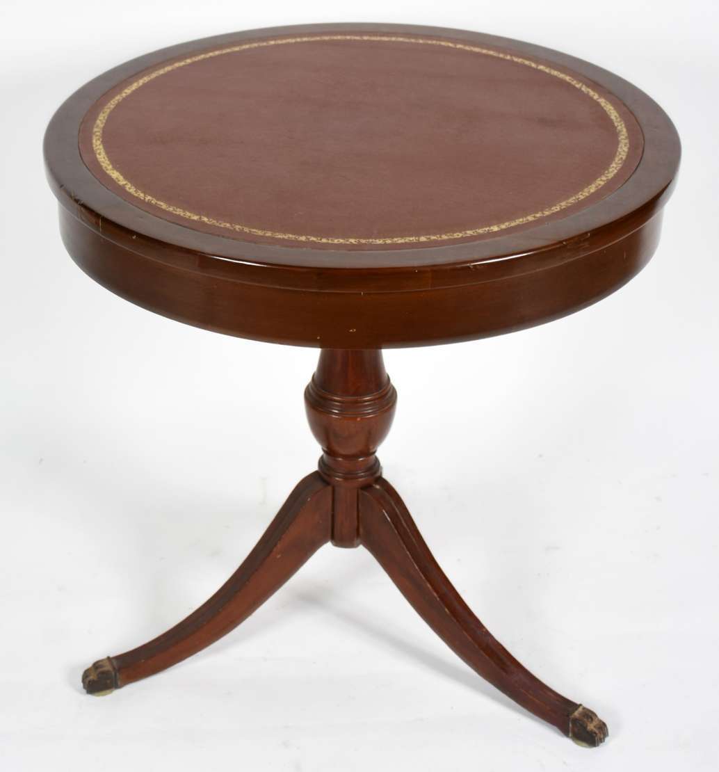 Duas mesinhas auxiliares de madeira nobre, feitio redondo.