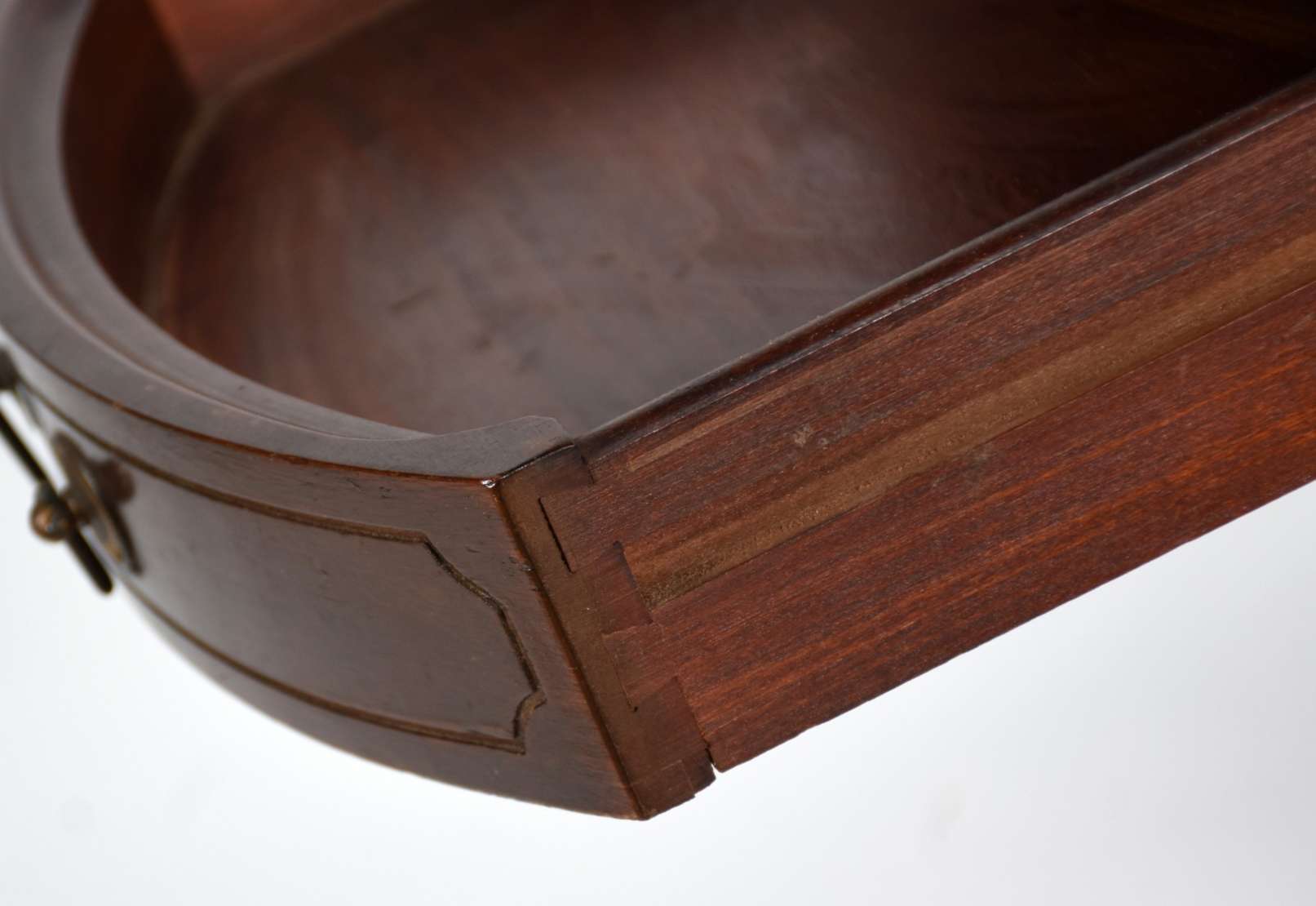 Mesa ninho de madeira nobre com 4 peças encaixadas, pernas torneadas (pequenos lascados).