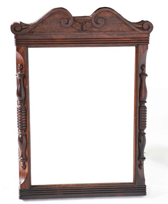 Móvel cômoda/toilette de madeira nobre com dois gavetões e duas gavetas, tampo de mármore encimado por espelho bisota...