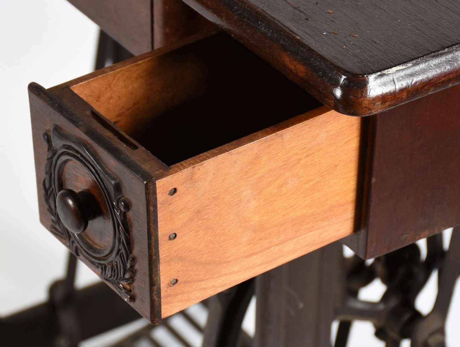 Mesa retangular de madeira nobre, uma gaveta, pernas retas.