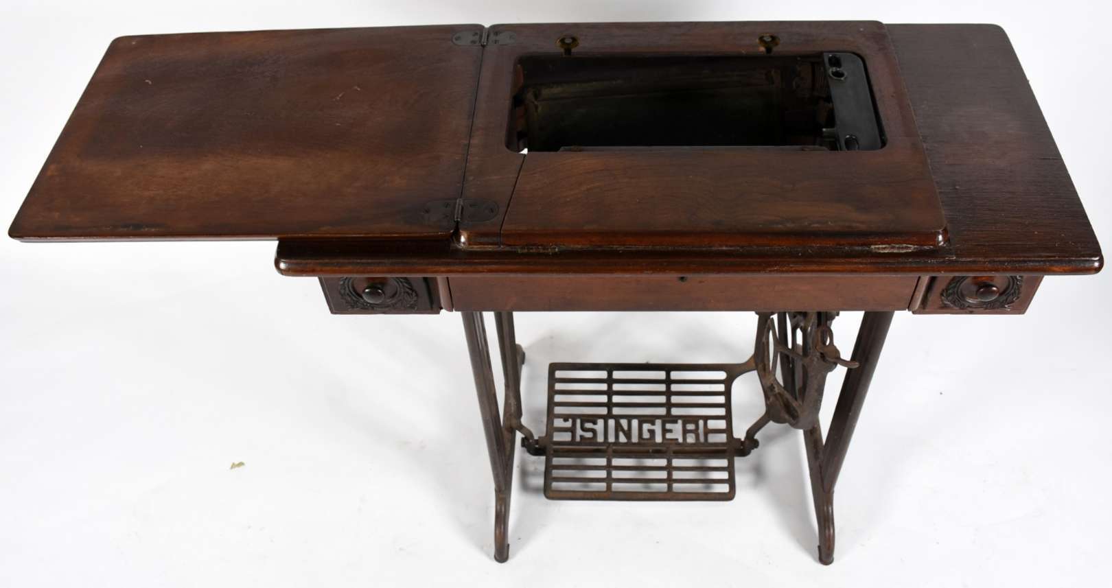 Grande mesa de madeira nobre com 2 gavetas, estilo colonial.